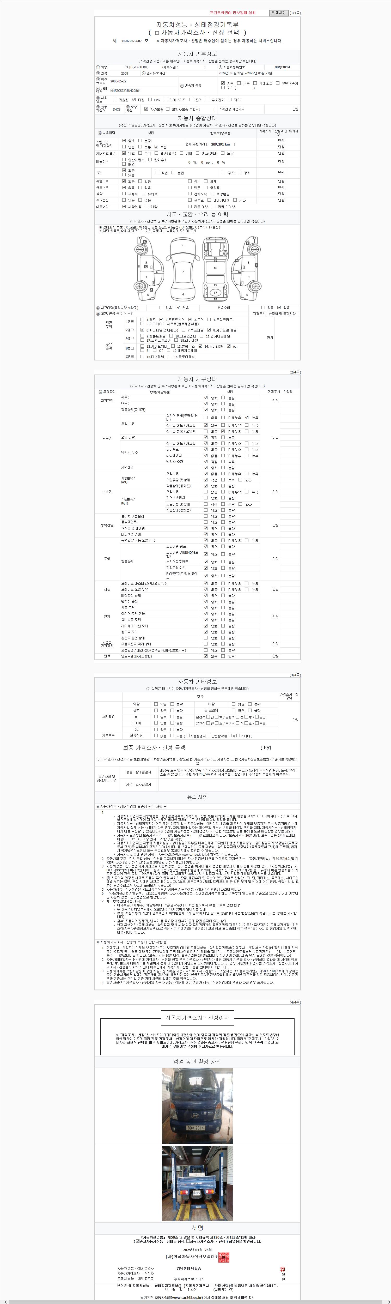 2. 차량 등록증이나 성능점검지 등을 상담자에게 요청및 확인하시고 사전에 미리 점검 하시기를 권유드립니다.