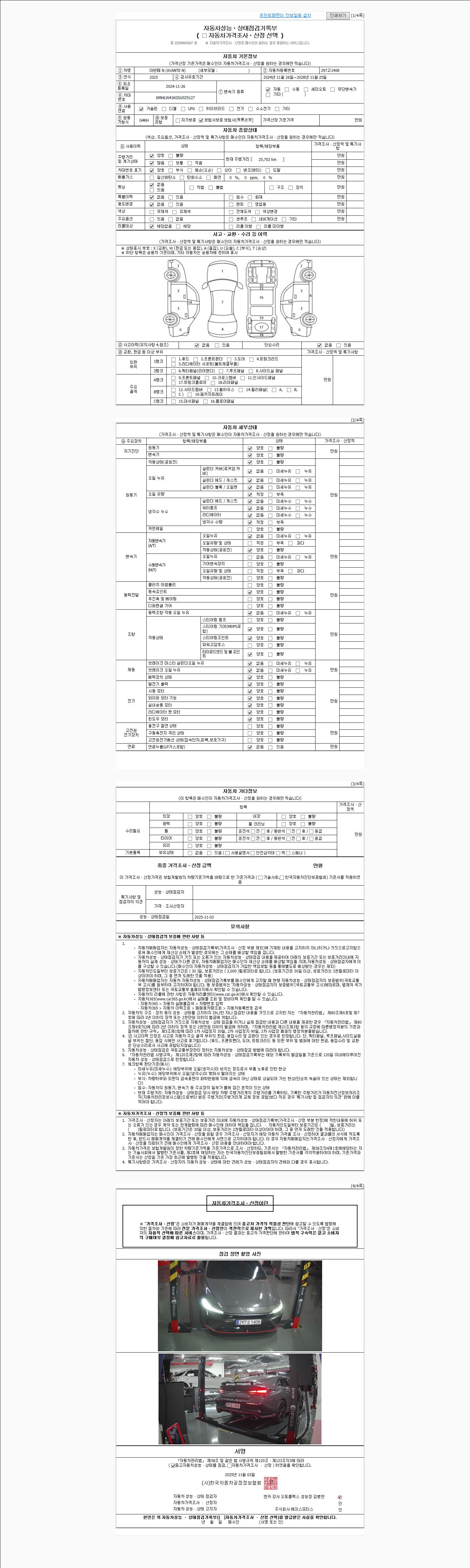 사고유무 성능기록부 참조 제시번호 제 2025149055 호
