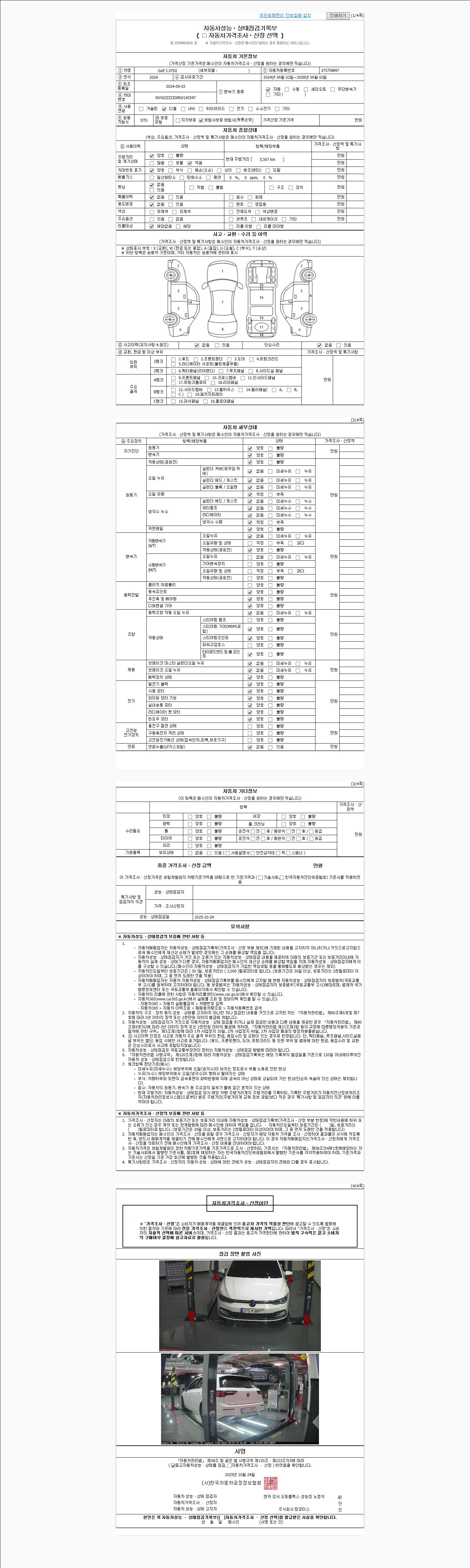 사고유무 성능기록부 참조 제시번호 제 2025143815 호