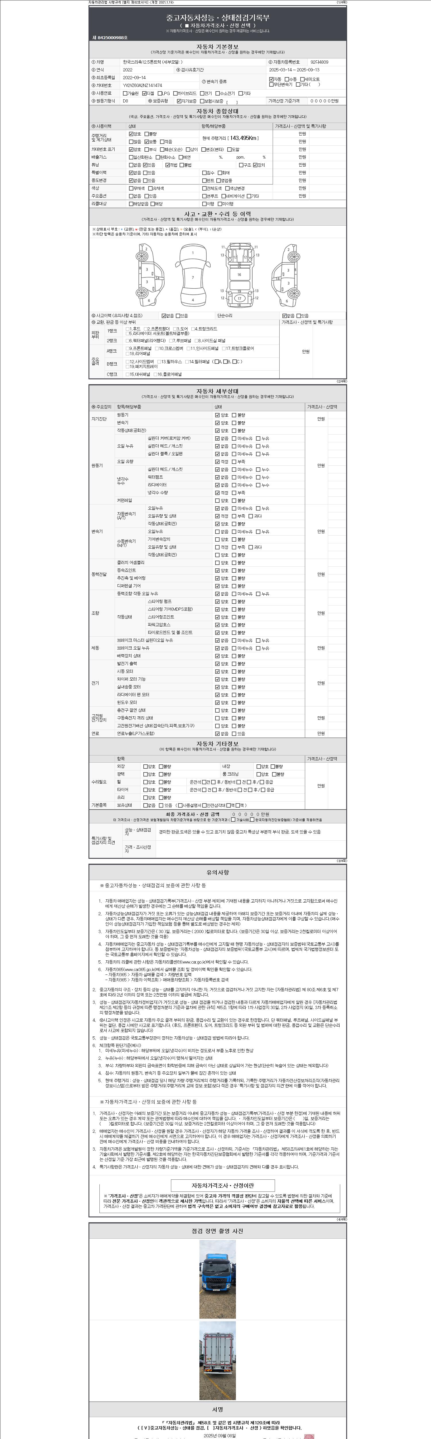 | 주행거리 | 143,495 km | 차량번호 | 92다4809 |