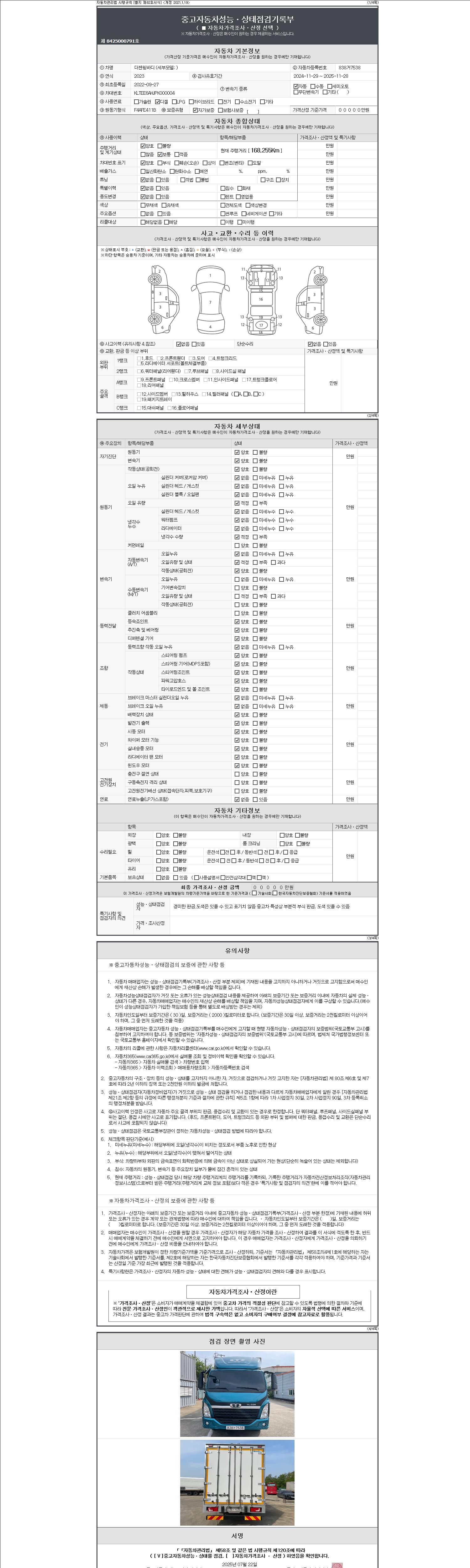 | 주행거리 | 168,200 km | 차량번호 | 838거7538 |