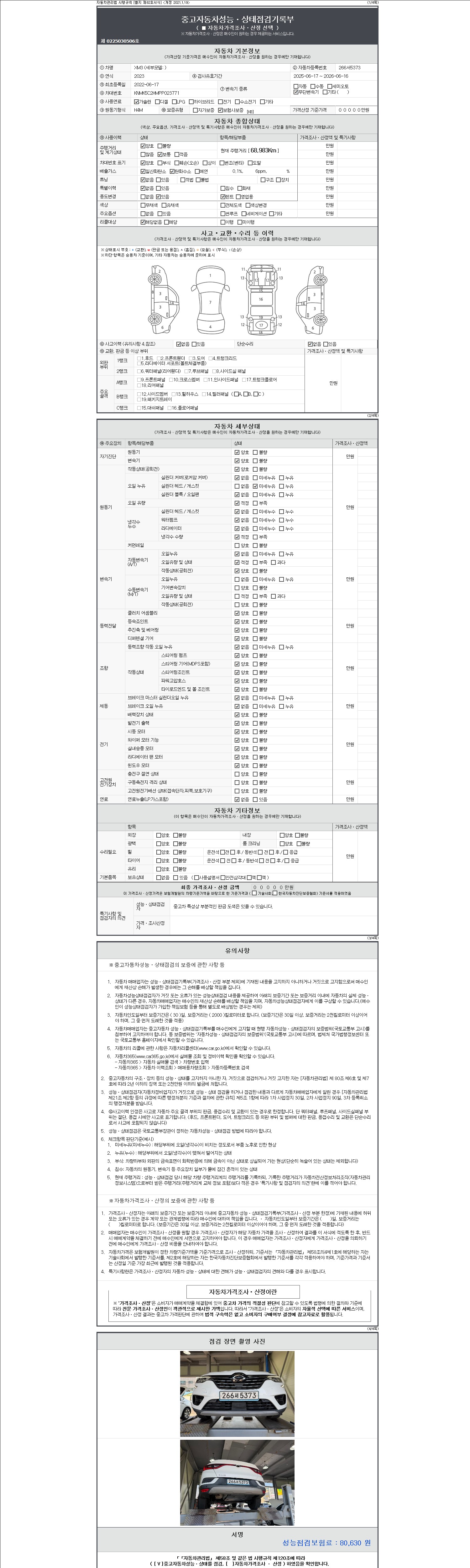 사고유무 성능기록부 참조 제시번호 제 2147483647 호