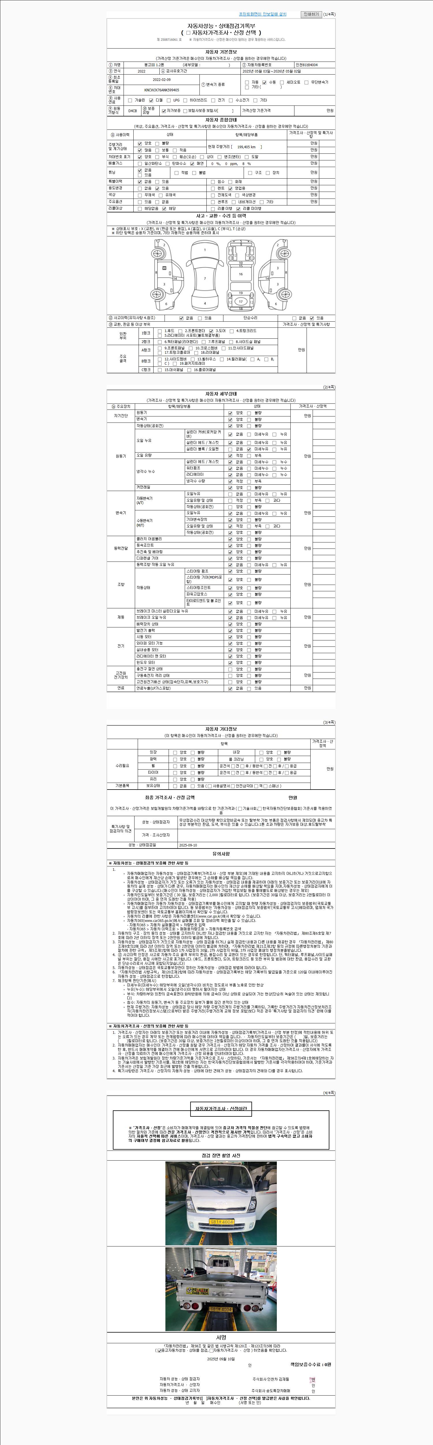 사고유무 성능기록부 참조 제시번호 제 2025049585 호