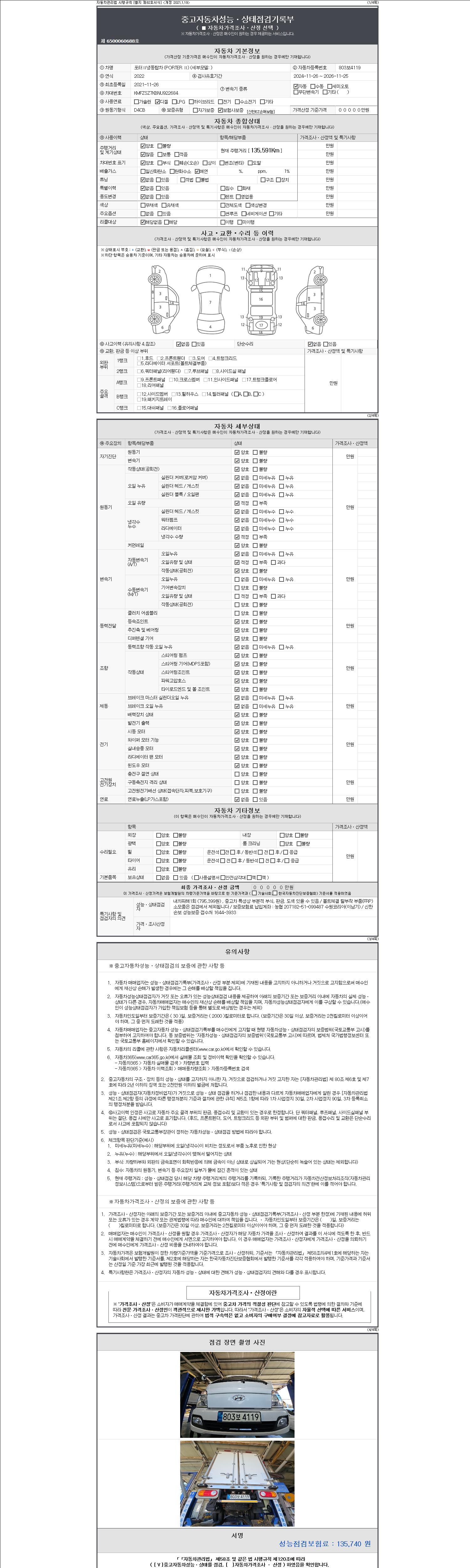 | 주행거리 | 135,591 km | 차량번호 | 803보4119 |