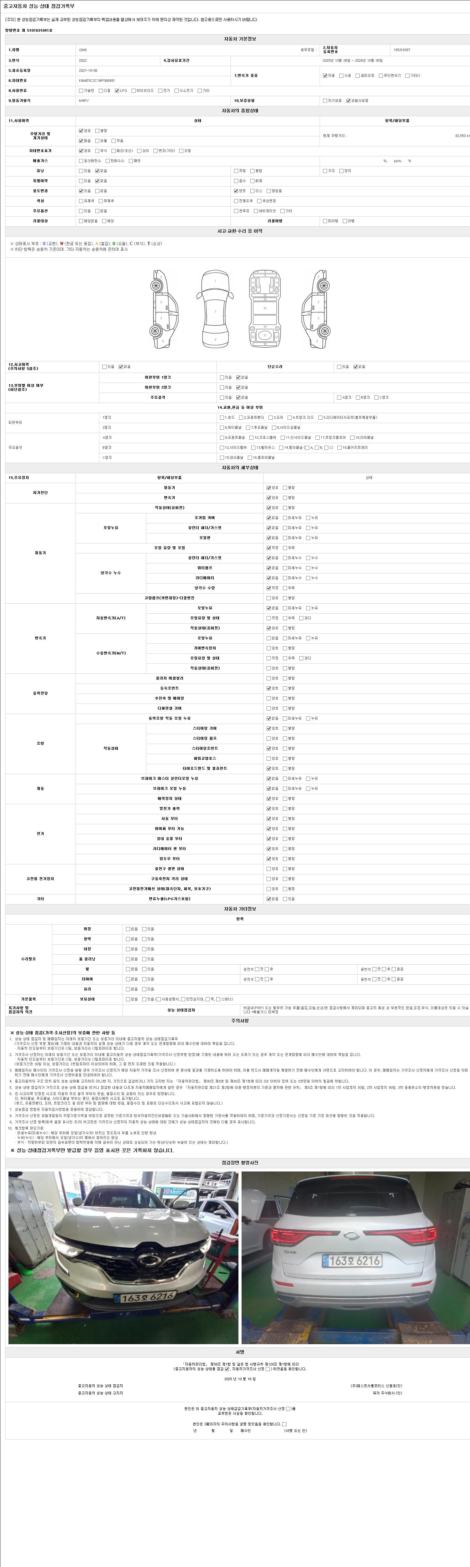 2. 차량 등록증이나 성능점검지 등을 상담자에게 요청및 확인하시고 사전에 미리 점검 하시기를 권유드립니다.