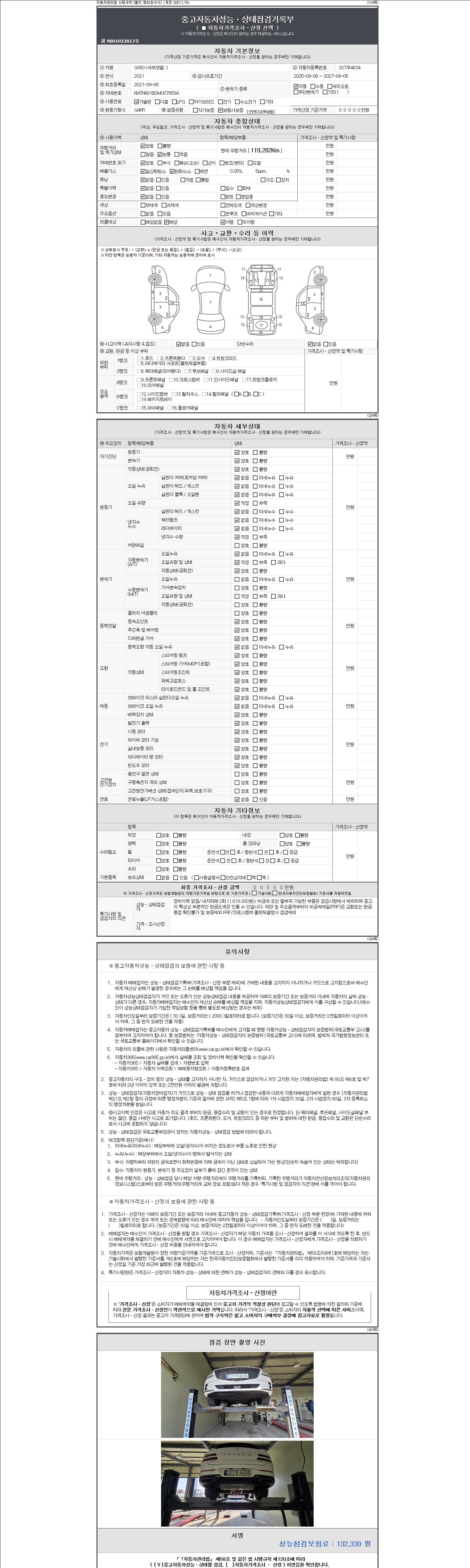 -중고자동차 매매업자를 통해 차량을 구입하실 경우 반드시 "중고자동차 성능, 상태점검 기록부"를 교뷰 받으셔야 하며, 매매업자는 반드시 의무 교부 하여야 압니다.