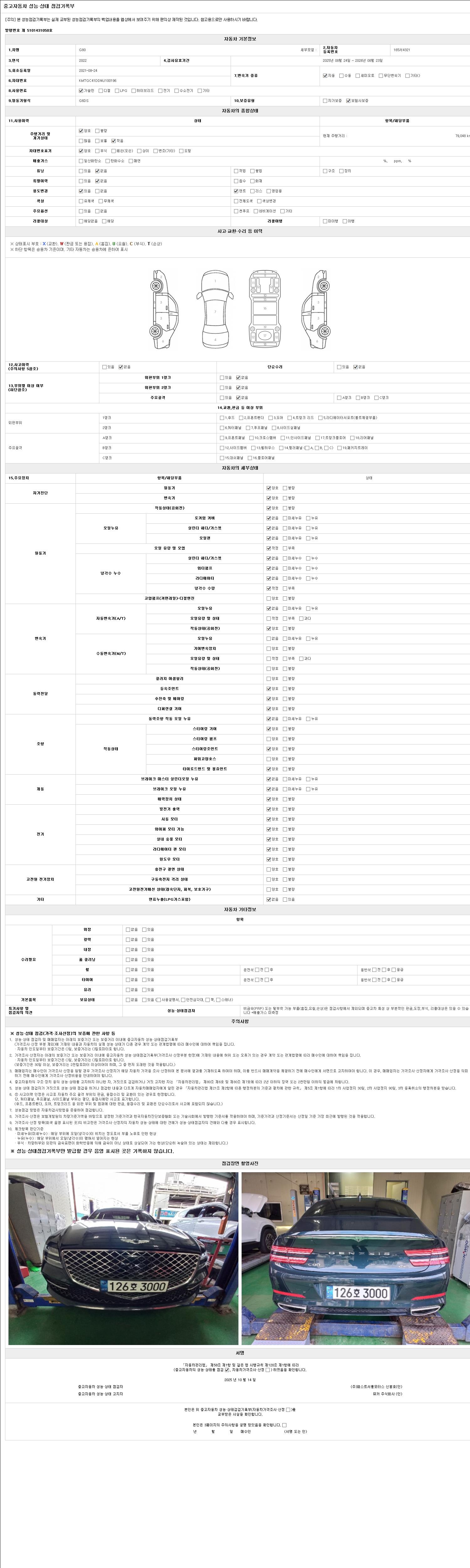 2. 차량 등록증이나 성능점검지 등을 상담자에게 요청및 확인하시고 사전에 미리 점검 하시기를 권유드립니다.