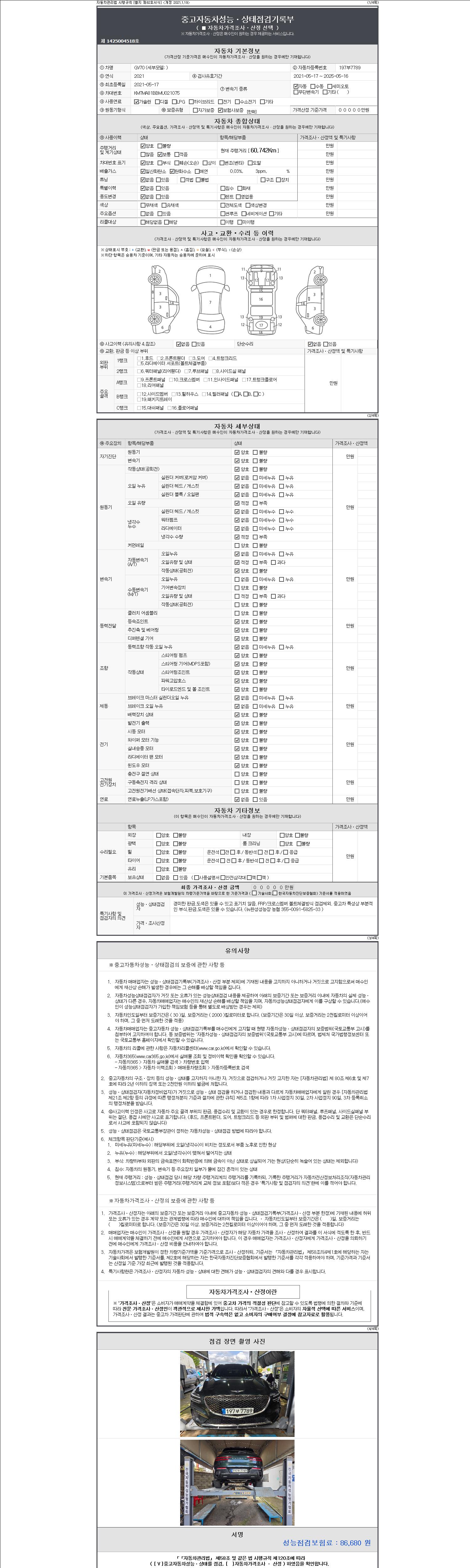 -중고자동차 매매업자를 통해 차량을 구입하실 경우 반드시 "중고자동차 성능, 상태점검 기록부"를 교뷰 받으셔야 하며, 매매업자는 반드시 의무 교부 하여야 압니다.