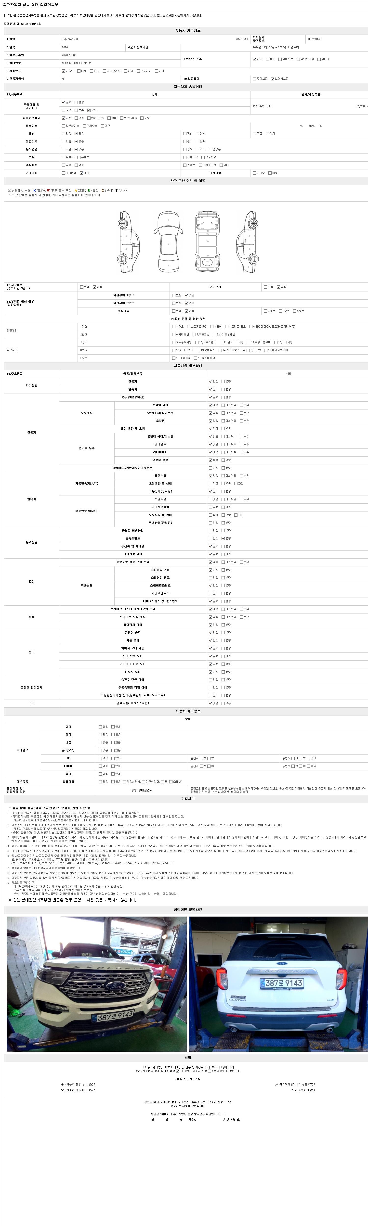 2. 차량 등록증이나 성능점검지 등을 상담자에게 요청및 확인하시고 사전에 미리 점검 하시기를 권유드립니다.