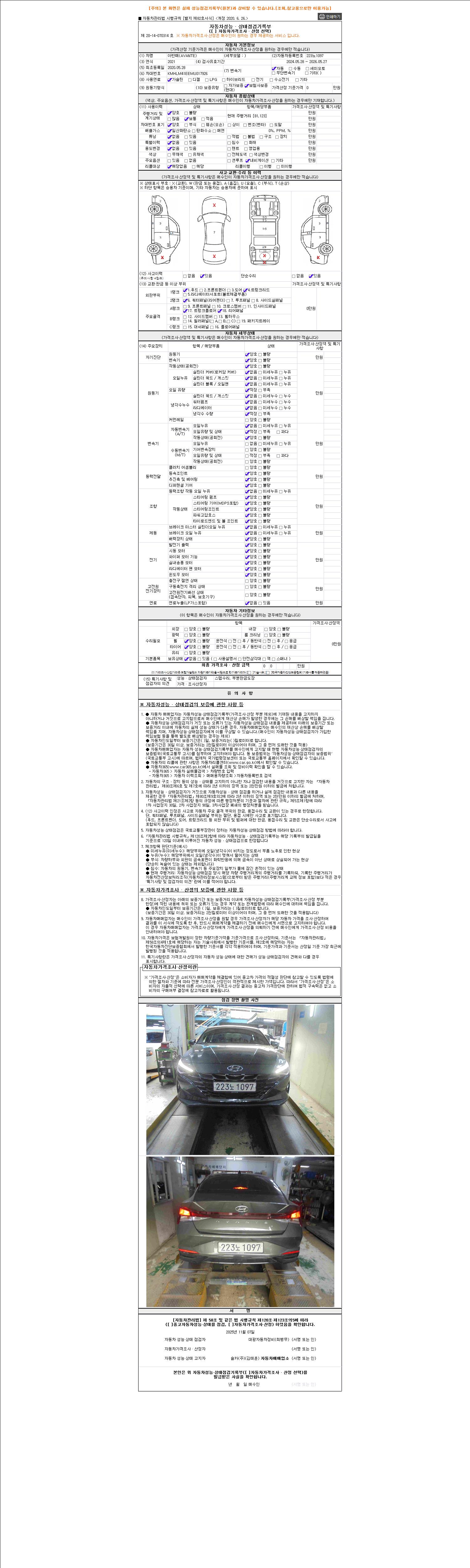 -중고자동차 매매업자를 통해 차량을 구입하실 경우 반드시 "중고자동차 성능, 상태점검 기록부"를 교뷰 받으셔야 하며, 매매업자는 반드시 의무 교부 하여야 압니다.