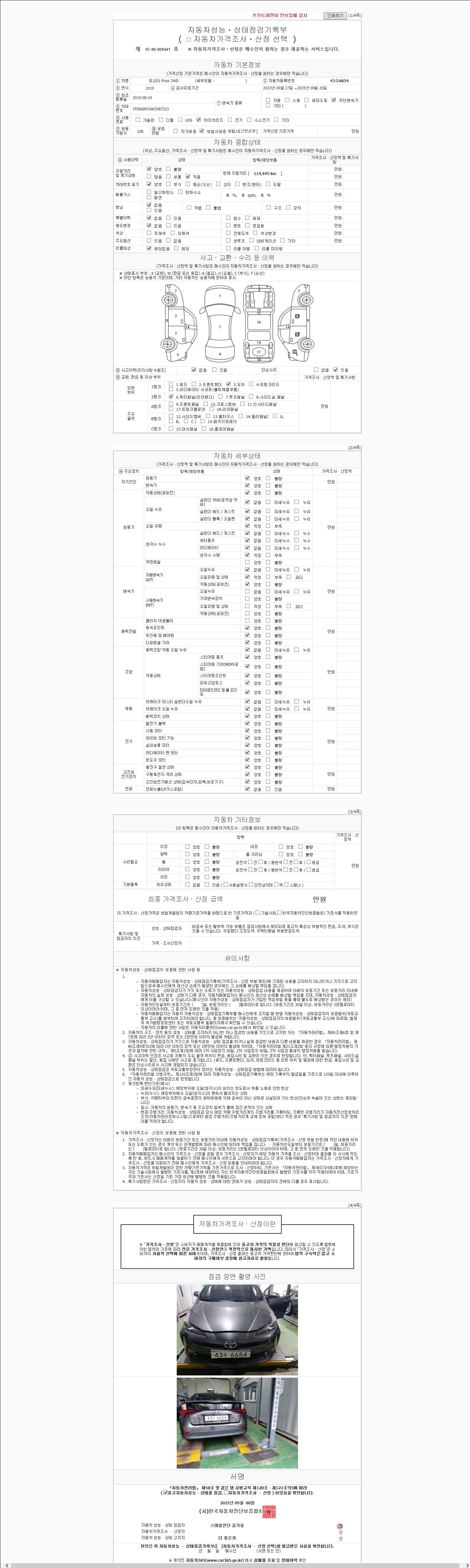 사고유무 성능기록부 참조 제시번호 제 2025119893 호
