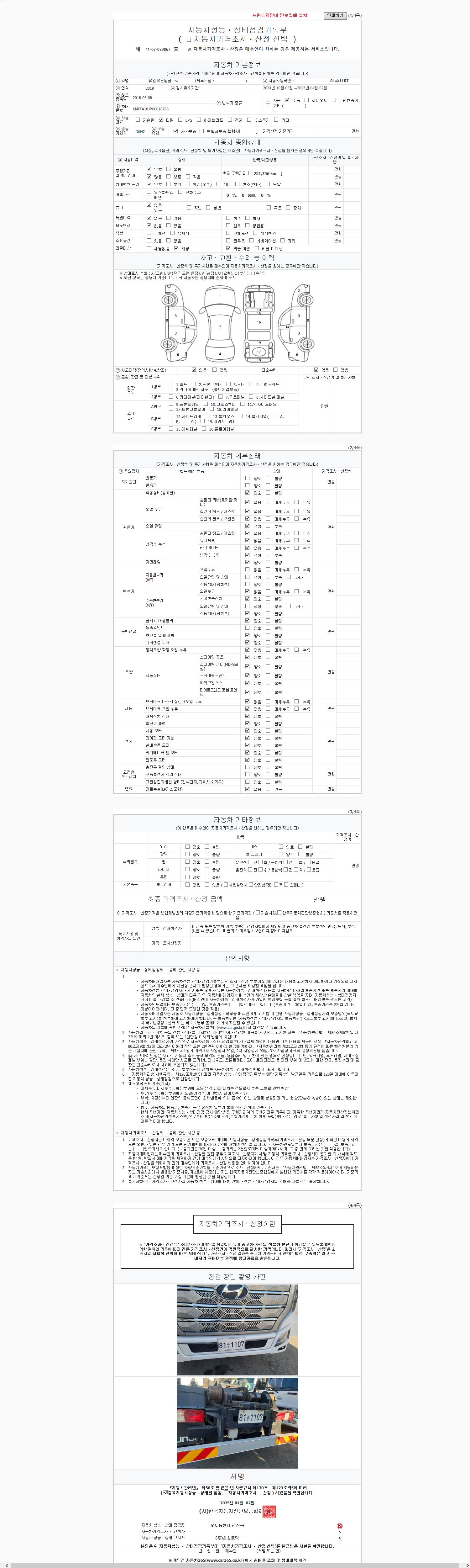 | 주행거리 | 251,598 km | 차량번호 | 81수1107 |
