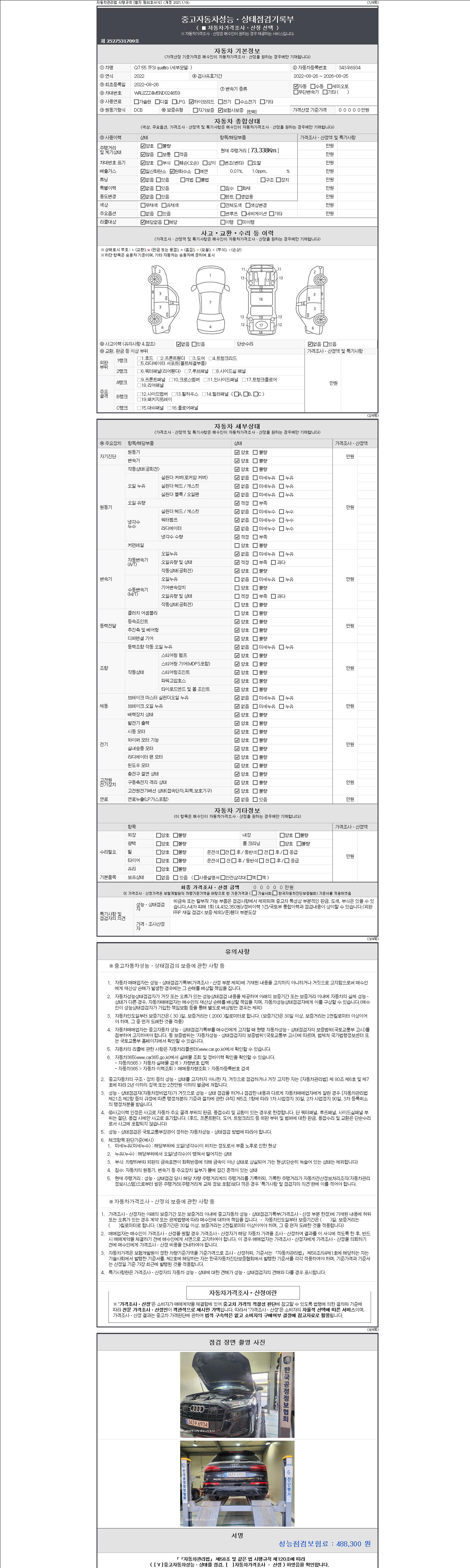 2. 차량 등록증이나 성능점검지 등을 상담자에게 요청및 확인하시고 사전에 미리 점검 하시기를 권유드립니다.