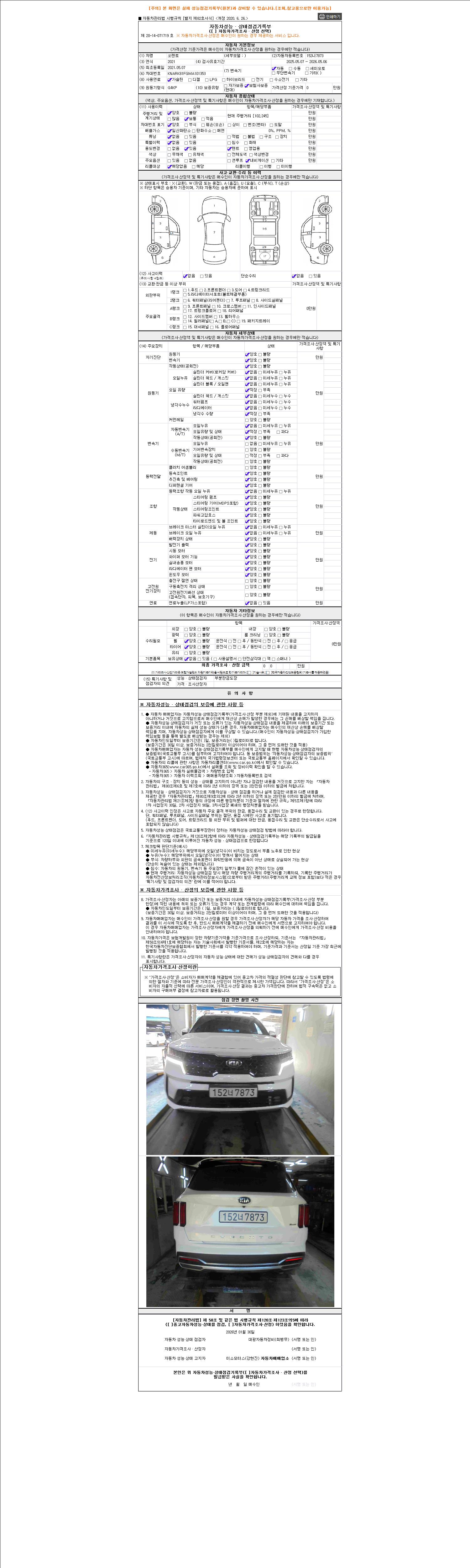 2. 차량 등록증이나 성능점검지 등을 상담자에게 요청및 확인하시고 사전에 미리 점검 하시기를 권유드립니다.