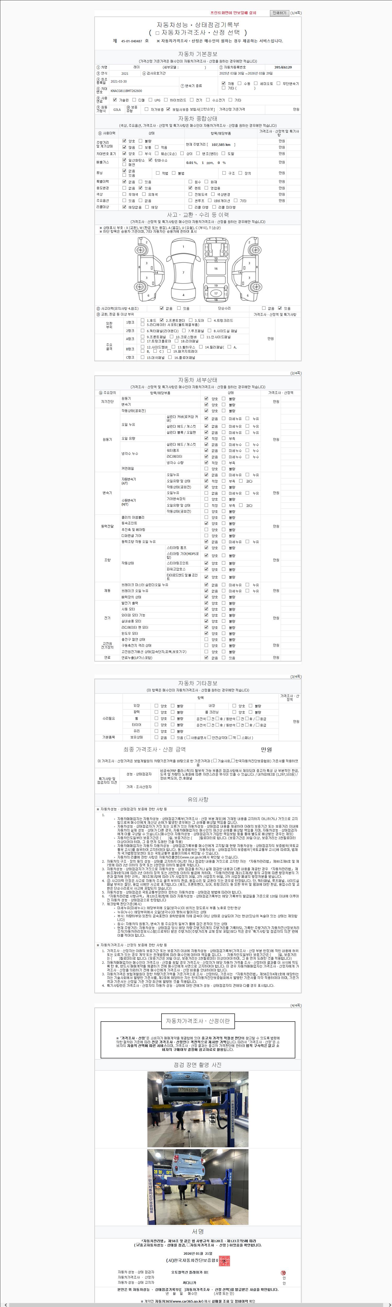 | 주행거리 | 107,585 km | 차량번호 | 395서6129 |