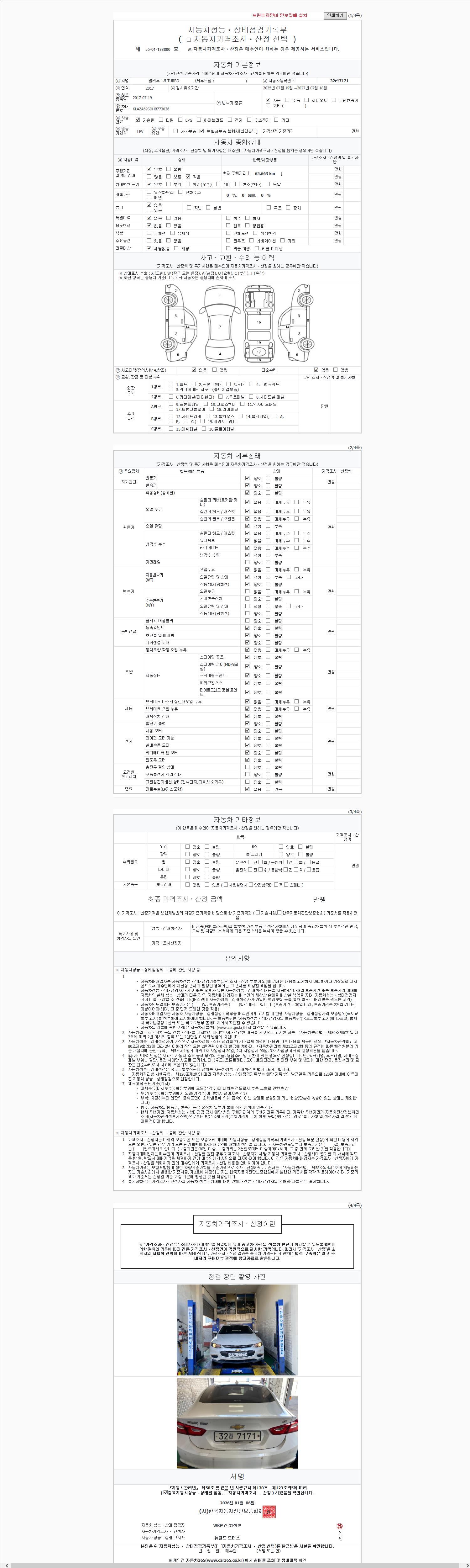 2. 차량 등록증이나 성능점검지 등을 상담자에게 요청및 확인하시고 사전에 미리 점검 하시기를 권유드립니다.