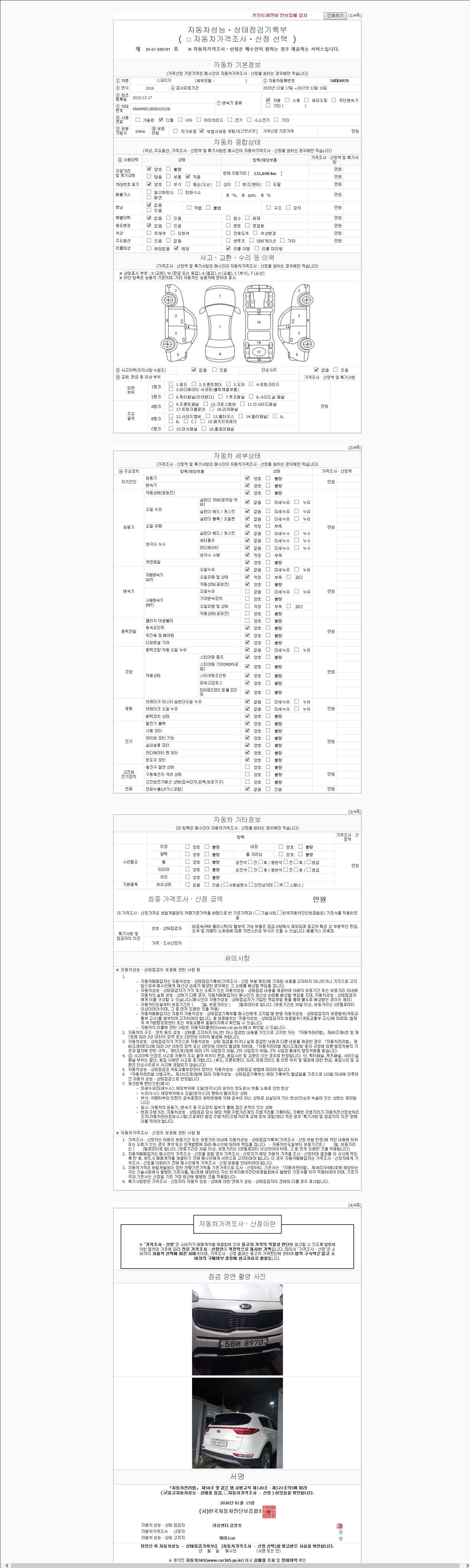 | 주행거리 | 131,648 km | 차량번호 | 58머8970 |