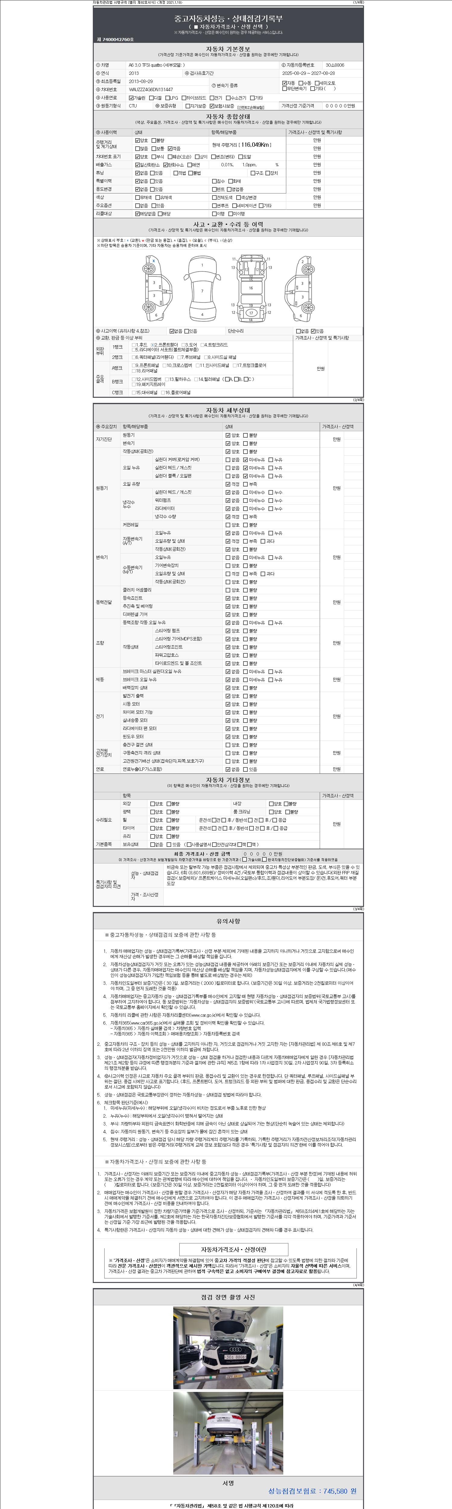 2. 차량 등록증이나 성능점검지 등을 상담자에게 요청및 확인하시고 사전에 미리 점검 하시기를 권유드립니다.