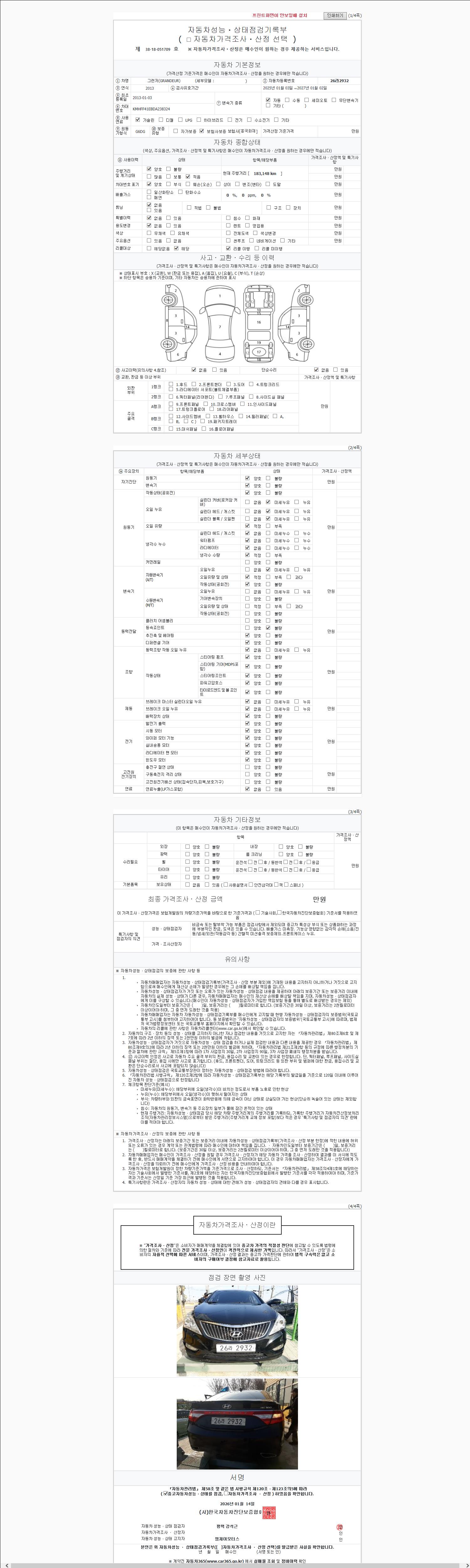 | 주행거리 | 183,148 km | 차량번호 | 26라2932 |