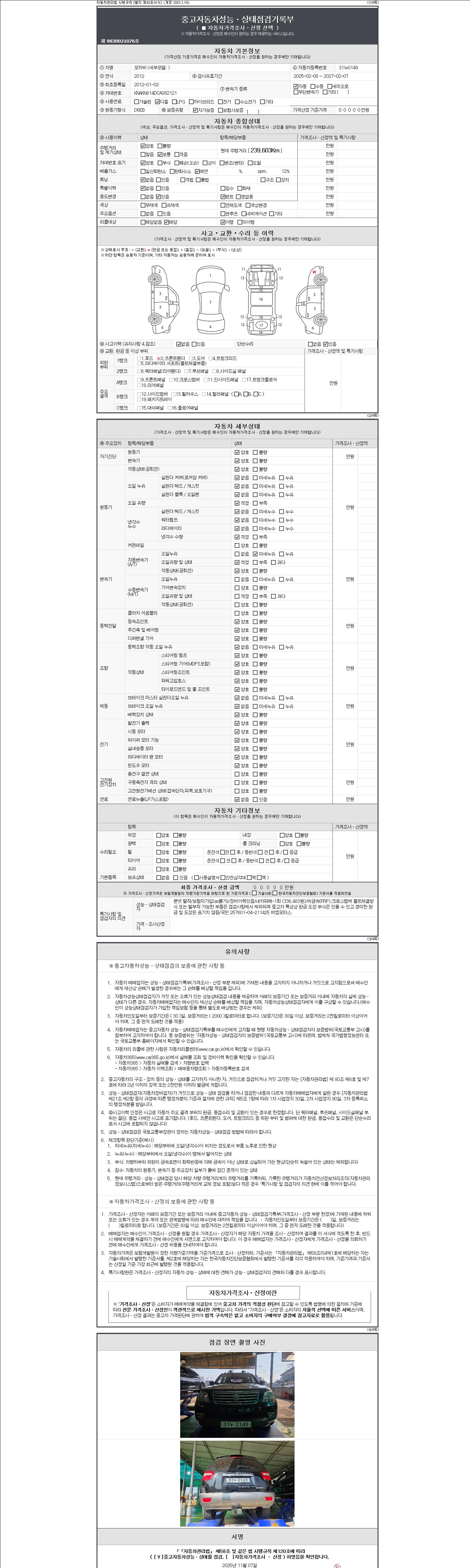 2. 차량 등록증이나 성능점검지 등을 상담자에게 요청및 확인하시고 사전에 미리 점검 하시기를 권유드립니다.