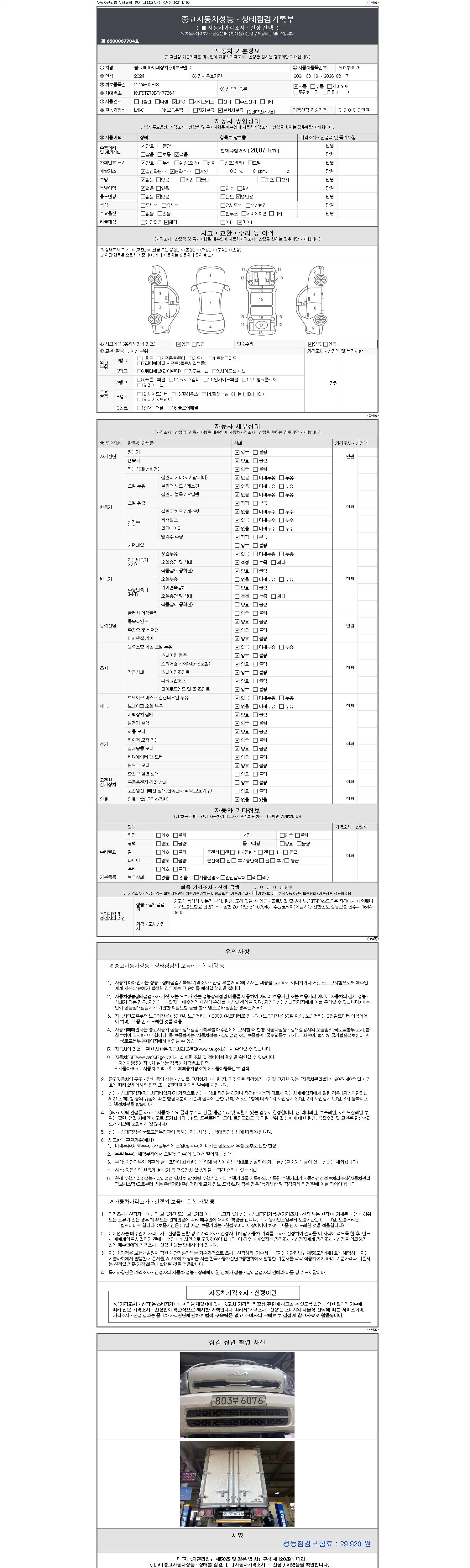 | 주행거리 | 28,871 km | 차량번호 | 803부6076 |