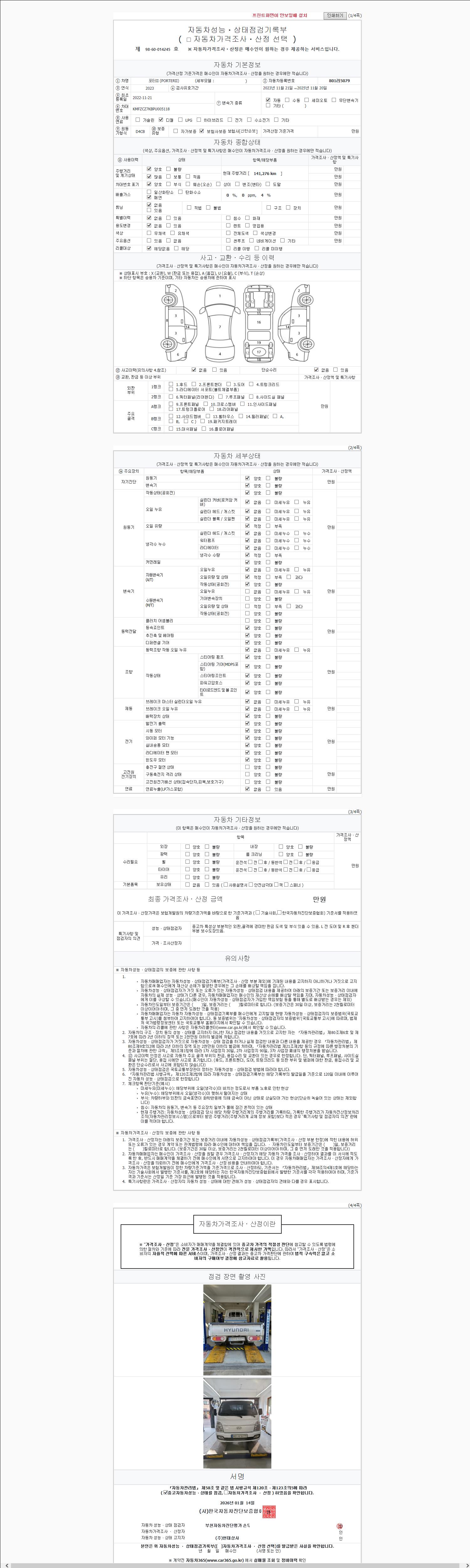 | 사고유무 | 성능기록부 참조 | 제시번호 | 제 2026004502 호 |