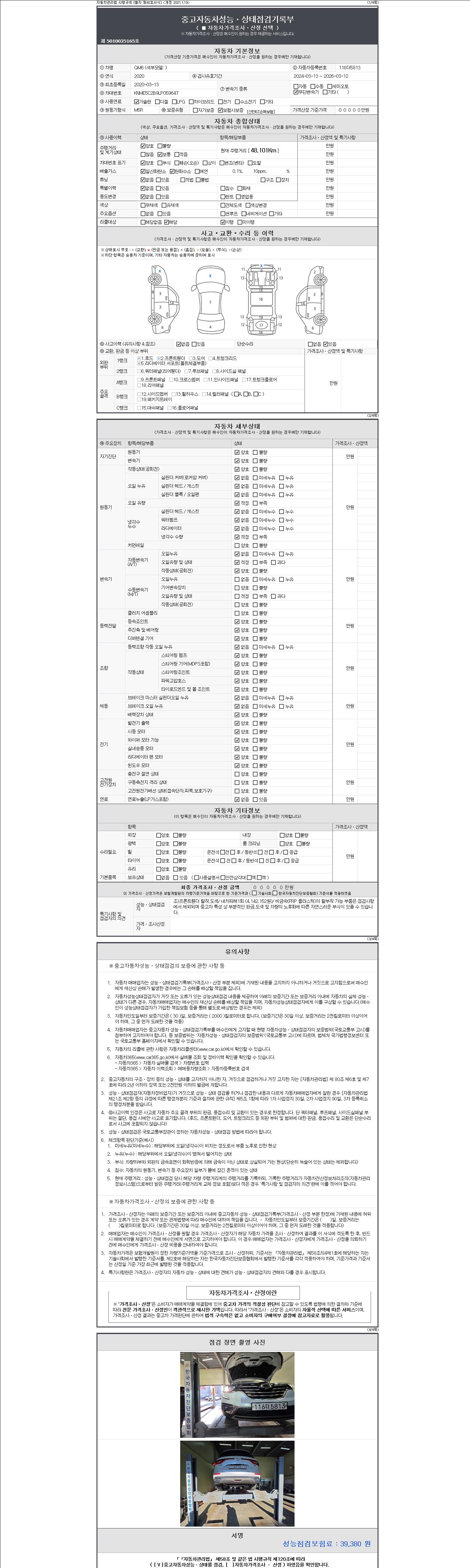 | 주행거리 | 48,101 km | 차량번호 | 116더5813 |