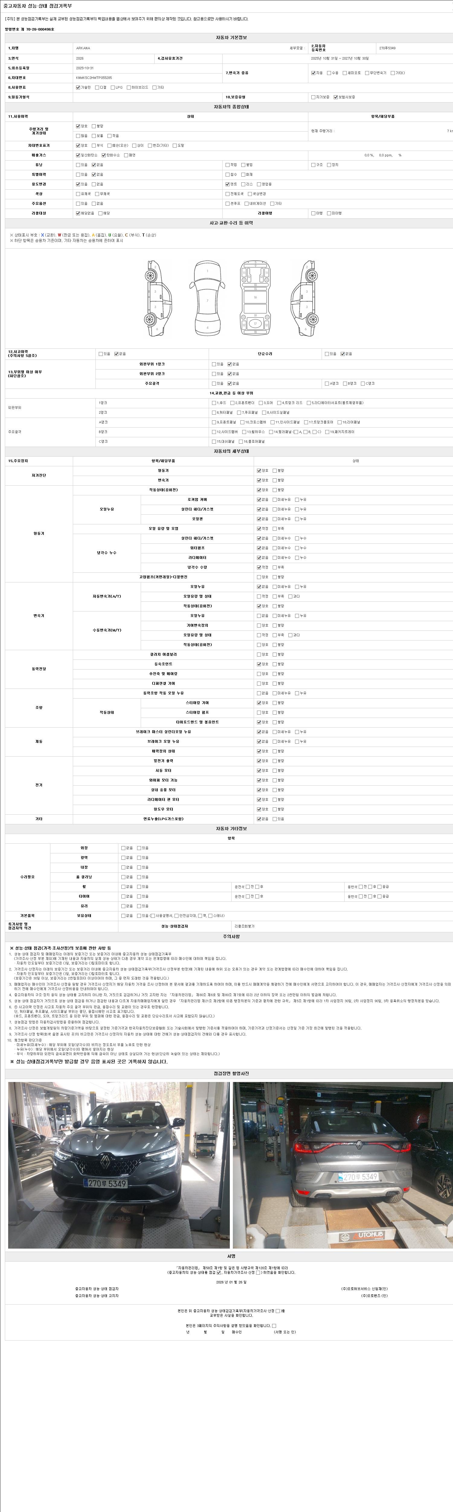 2. 차량 등록증이나 성능점검지 등을 상담자에게 요청및 확인하시고 사전에 미리 점검 하시기를 권유드립니다.