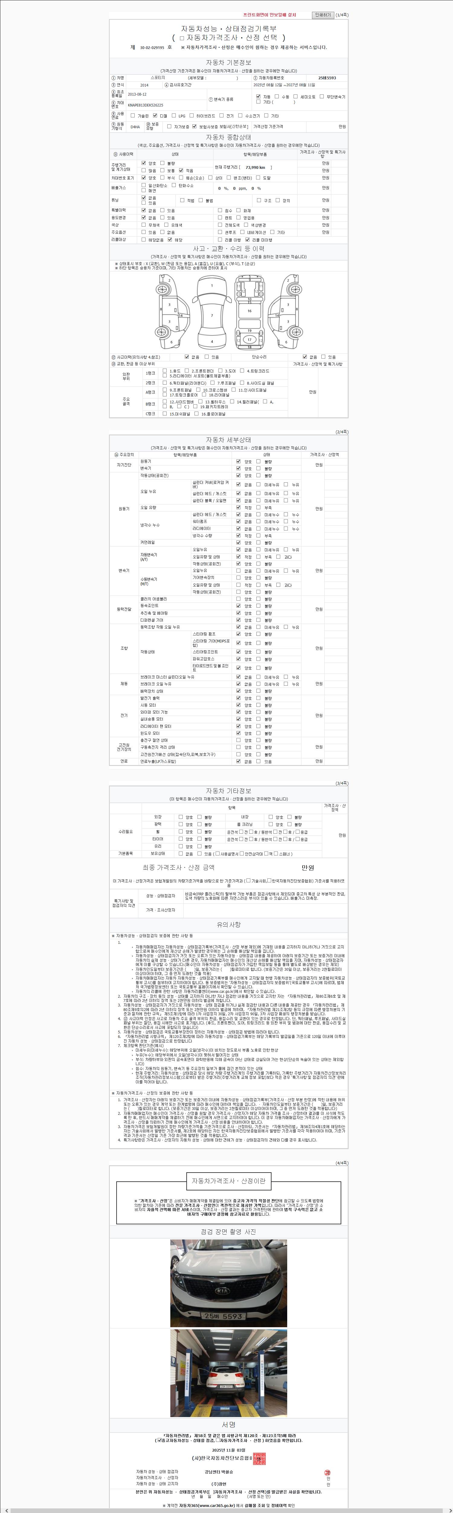 -중고자동차 매매업자를 통해 차량을 구입하실 경우 반드시 "중고자동차 성능, 상태점검 기록부"를 교뷰 받으셔야 하며, 매매업자는 반드시 의무 교부 하여야 압니다.