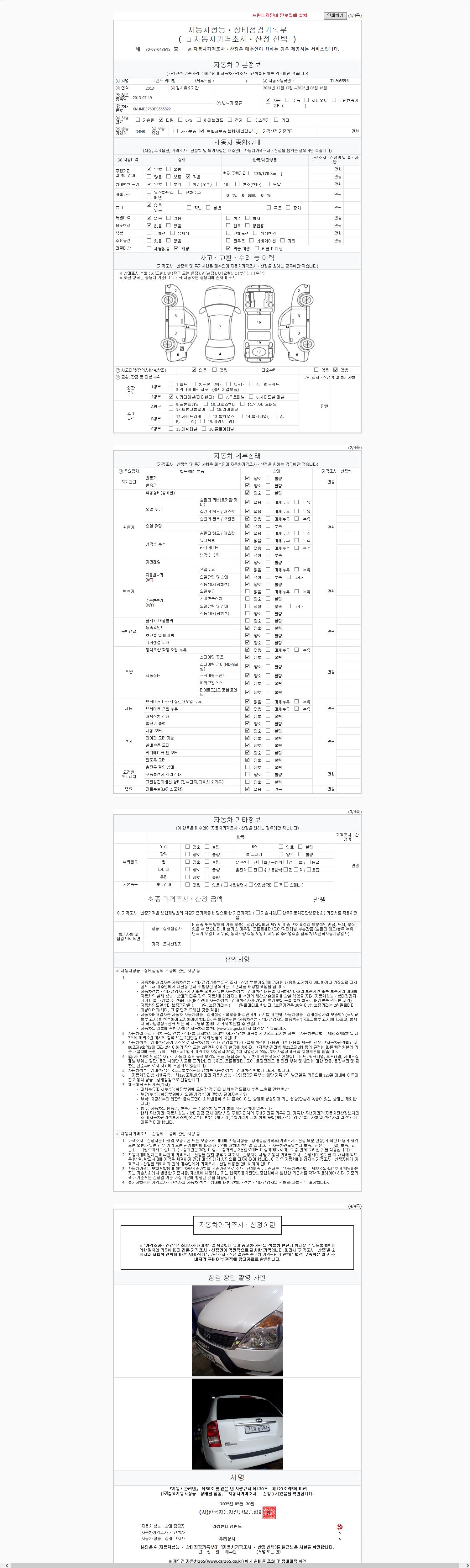 사고유무 성능기록부 참조 제시번호 제 2147483647 호