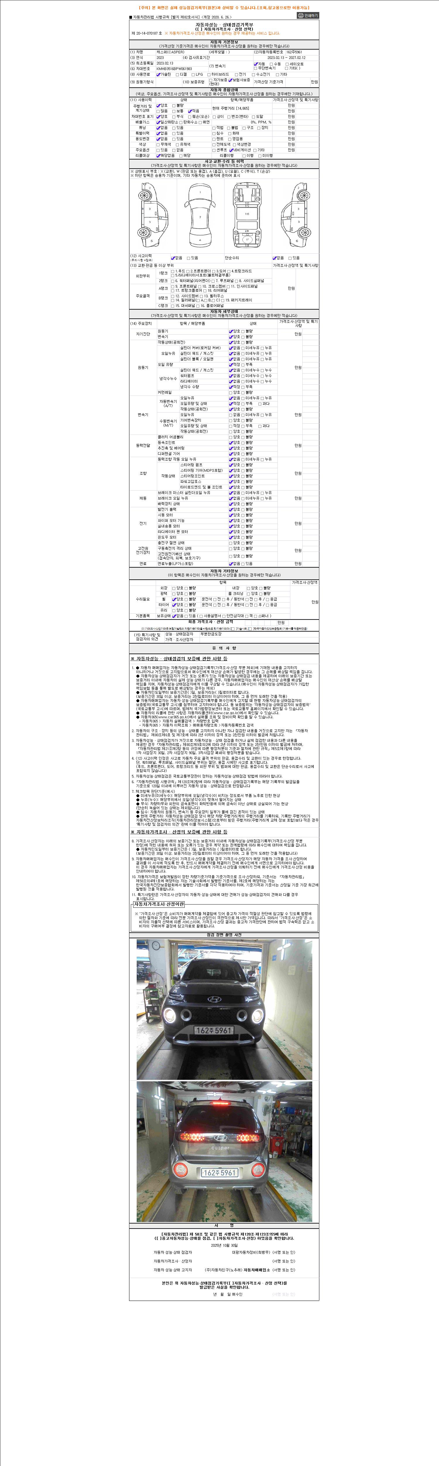 2. 차량 등록증이나 성능점검지 등을 상담자에게 요청및 확인하시고 사전에 미리 점검 하시기를 권유드립니다.
