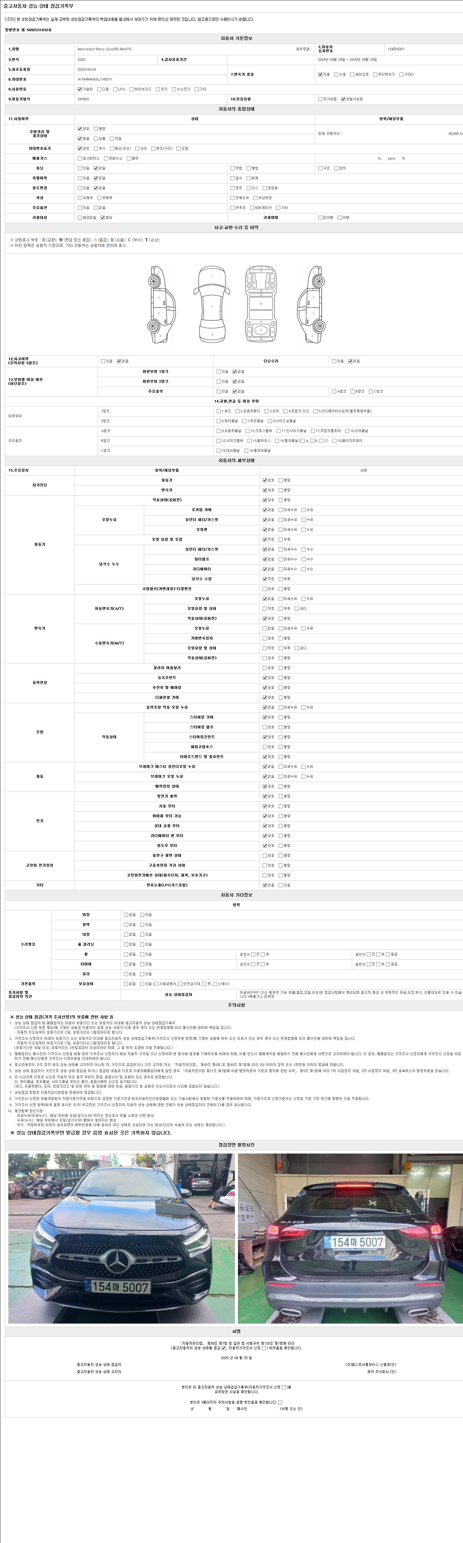 사고유무 성능기록부 참조 제시번호 제 2025032364 호