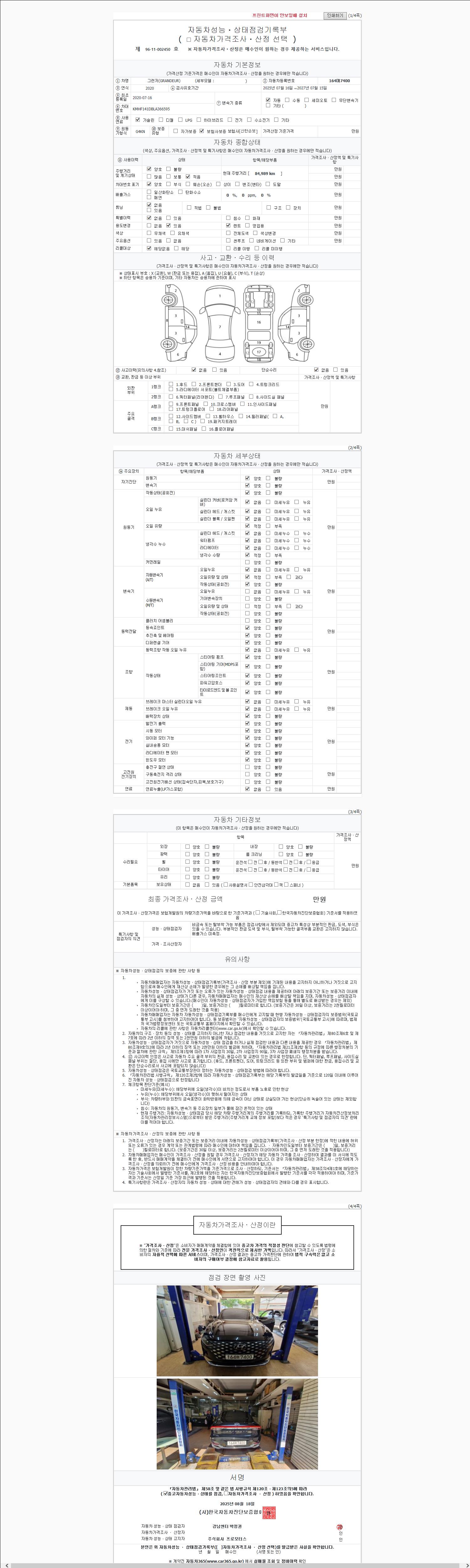사고유무 성능기록부 참조 제시번호 제 2025114350 호