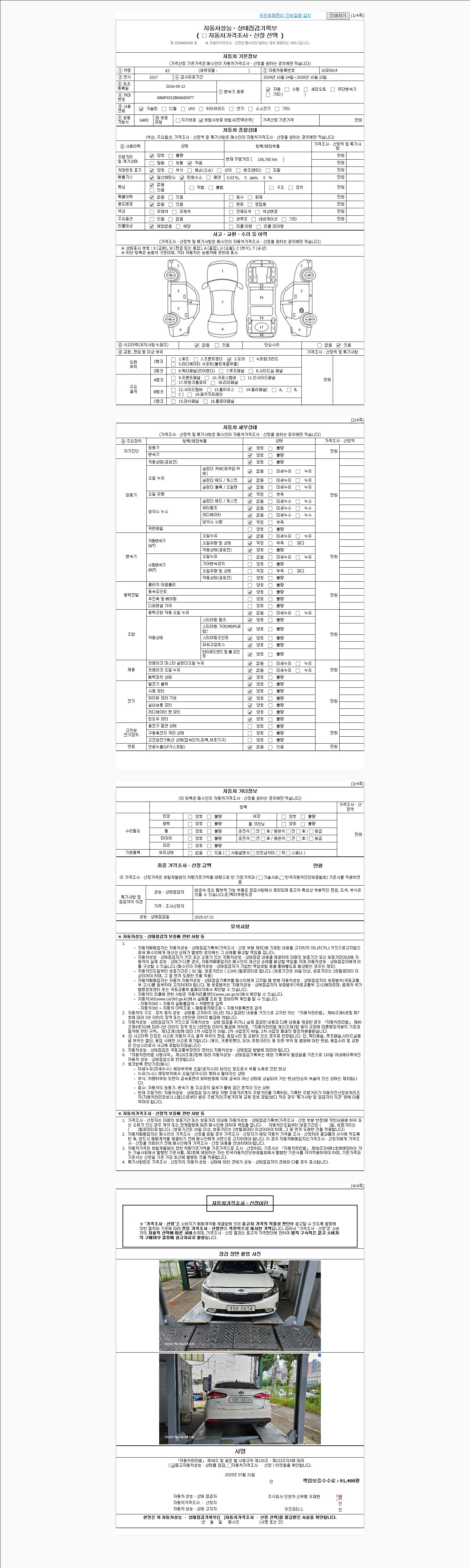 2. 차량 등록증이나 성능점검지 등을 상담자에게 요청및 확인하시고 사전에 미리 점검 하시기를 권유드립니다.