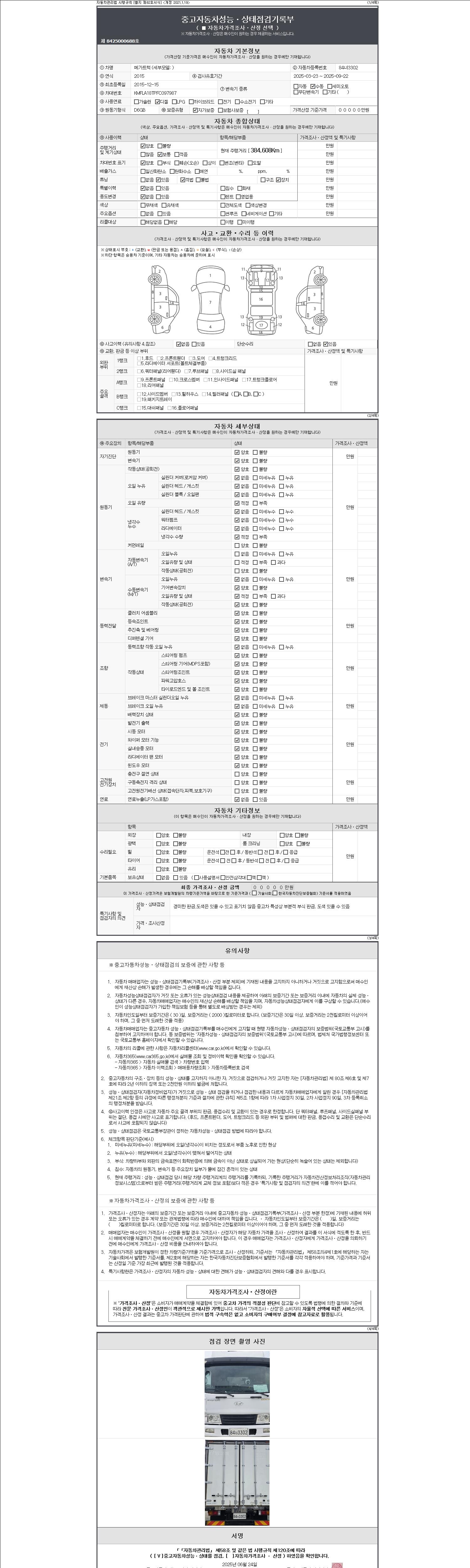 | 주행거리 | 384,607 km | 차량번호 | 84너3302 |
