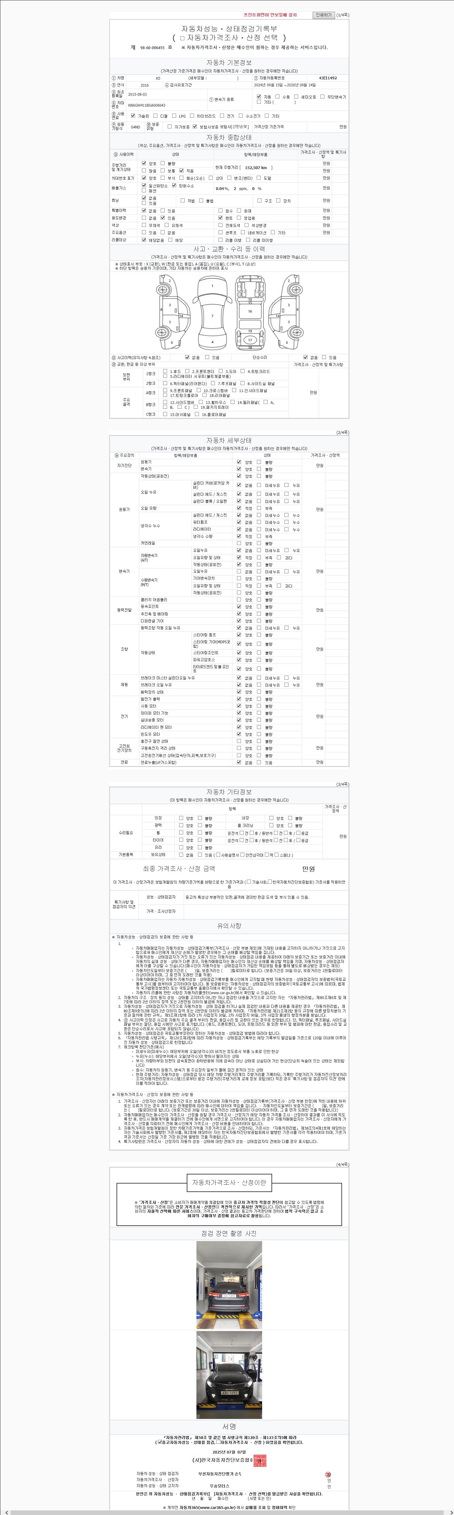 사고유무 성능기록부 참조 제시번호 제 2025123773 호