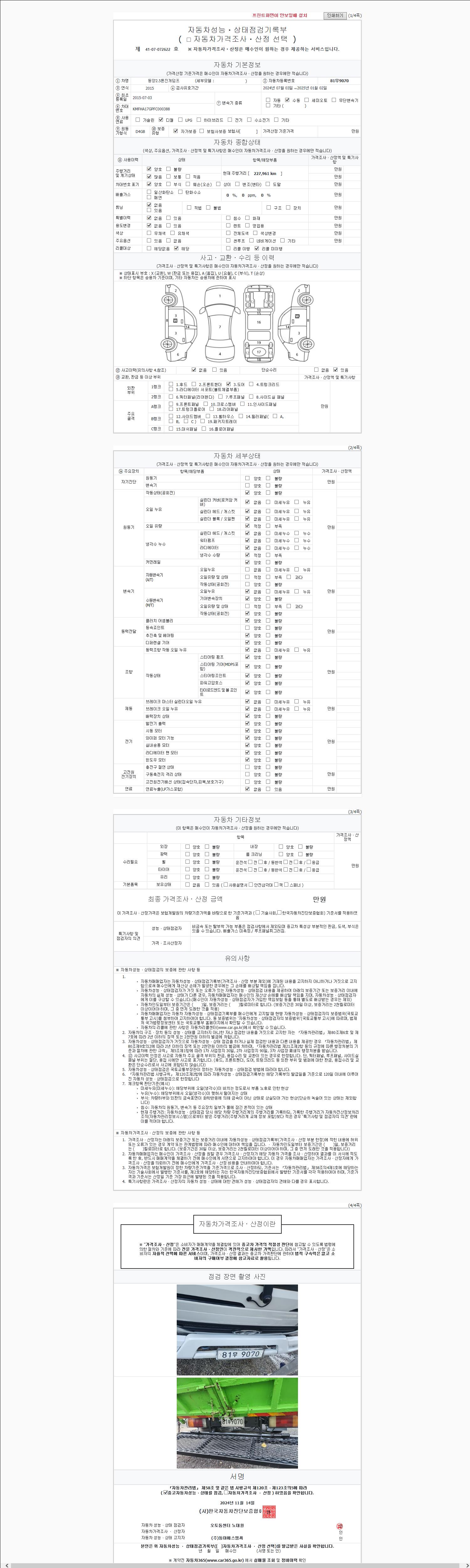 사고유무 성능기록부 참조 제시번호 제 2147483647 호