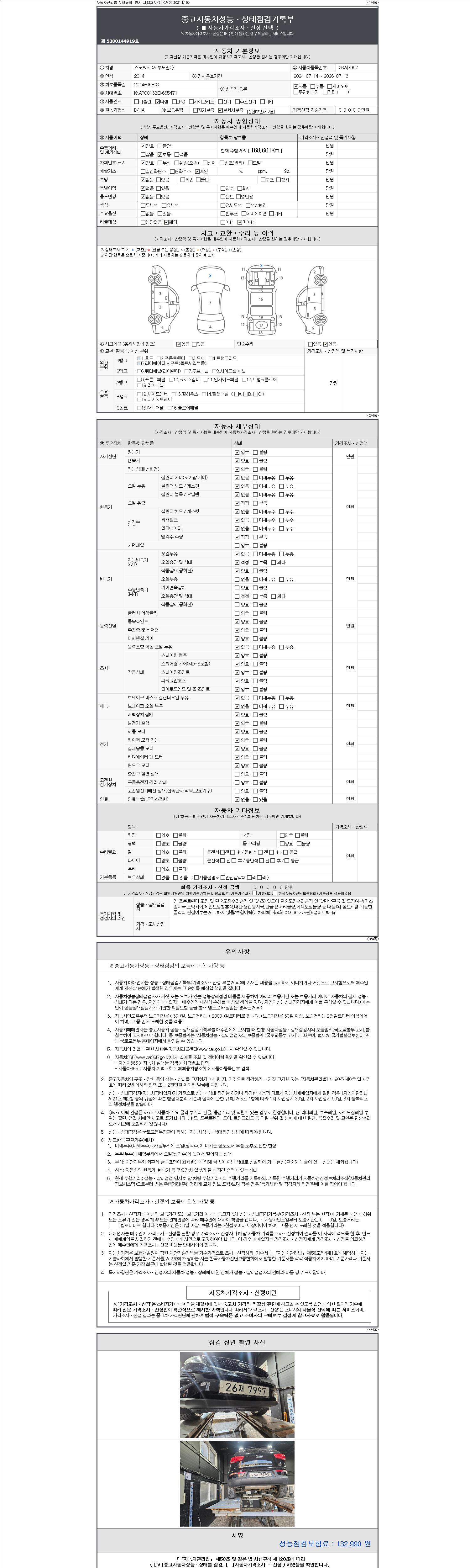 2. 차량 등록증이나 성능점검지 등을 상담자에게 요청및 확인하시고 사전에 미리 점검 하시기를 권유드립니다.