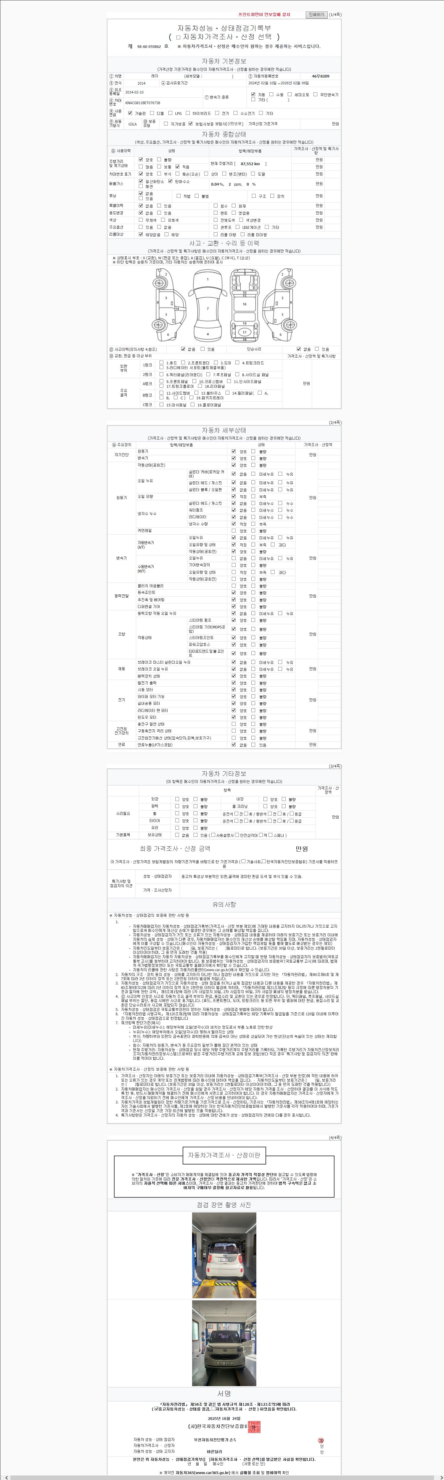2. 차량 등록증이나 성능점검지 등을 상담자에게 요청및 확인하시고 사전에 미리 점검 하시기를 권유드립니다.