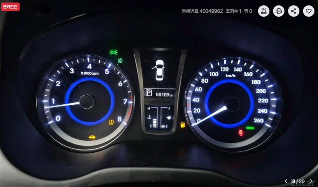 주행거리 50,107 km 차량번호 57주9754