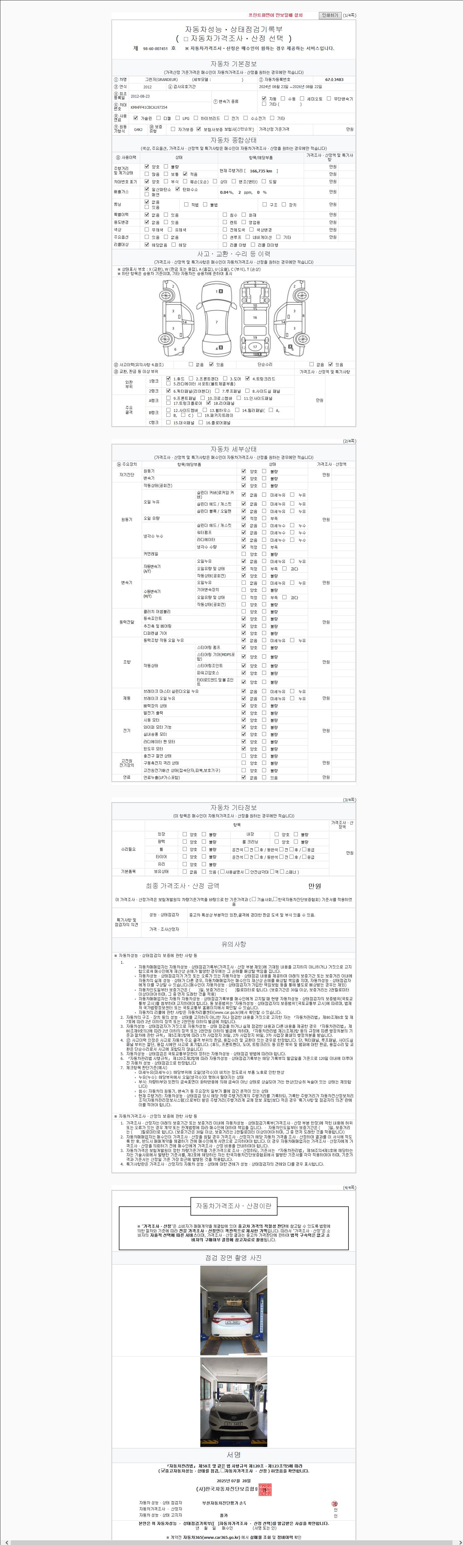 사고유무 성능기록부 참조 제시번호 제 2025140561 호