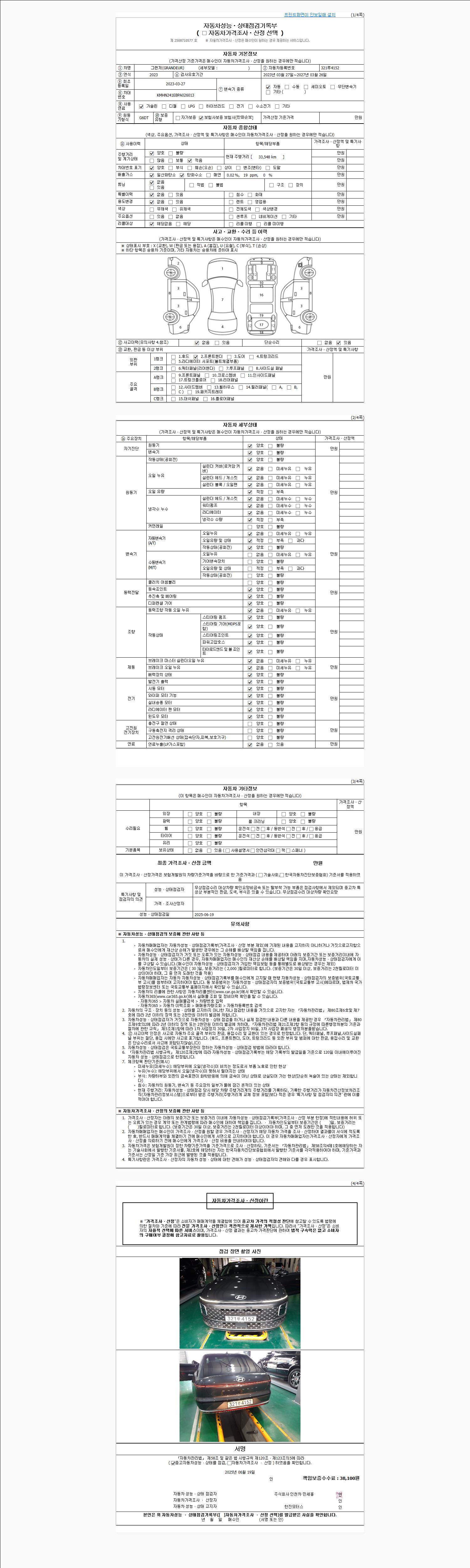 사고유무 성능기록부 참조 제시번호 제 2025003123 호