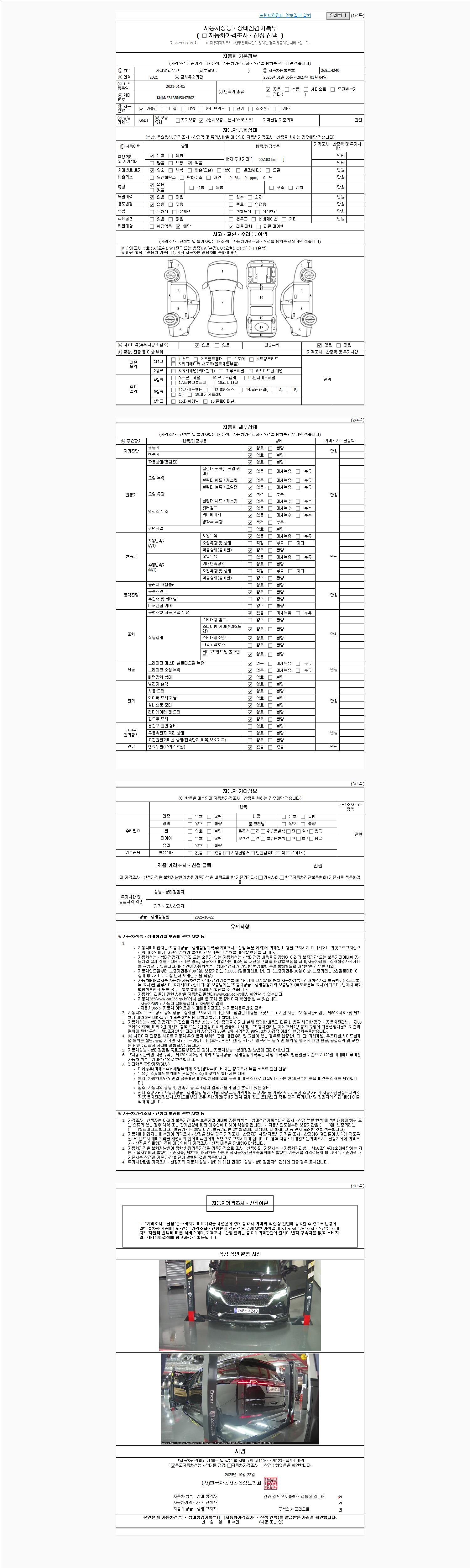 사고유무 성능기록부 참조 제시번호 제 2025141452 호
