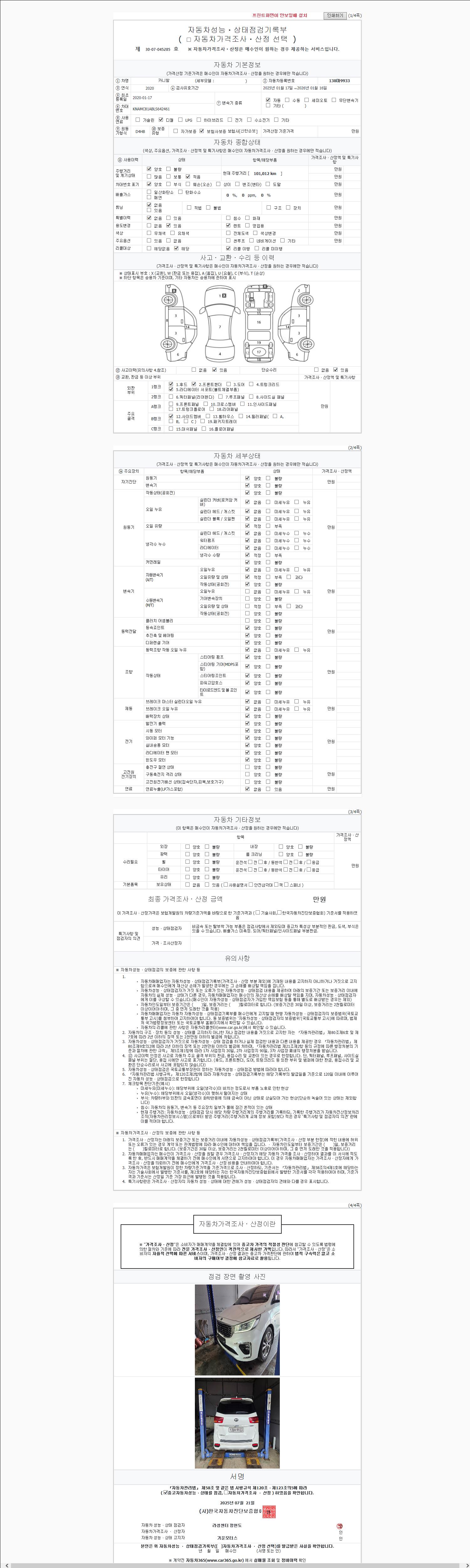 사고유무 성능기록부 참조 제시번호 제 2147483647 호