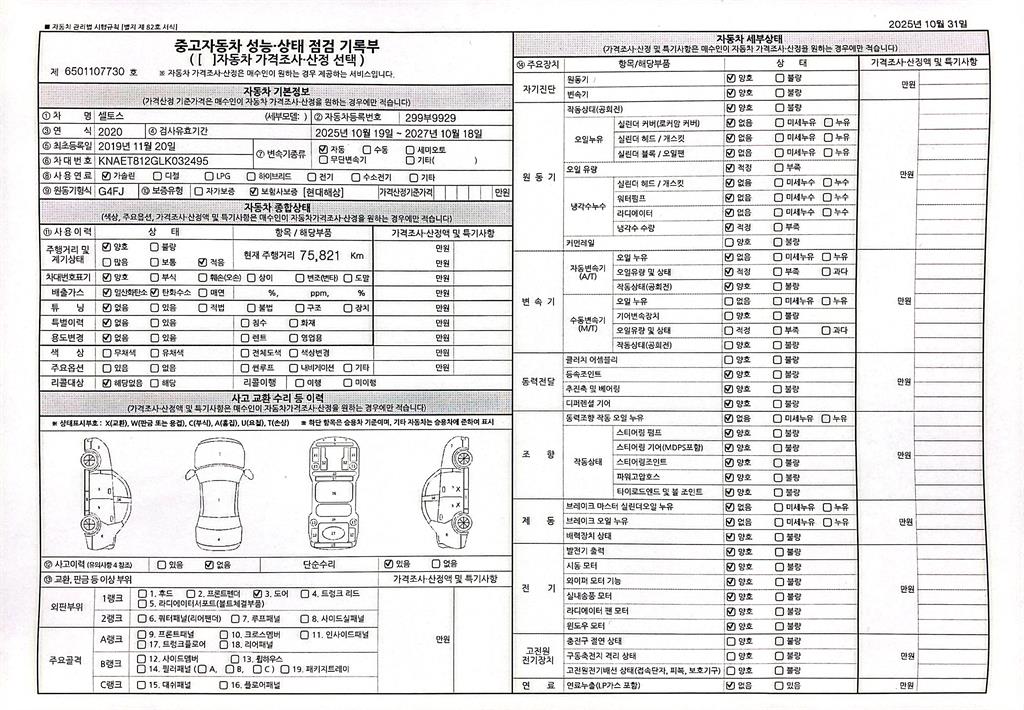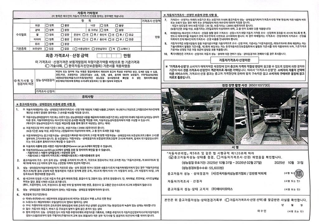 사고유무 성능기록부 참조 제시번호 제 2025147207 호