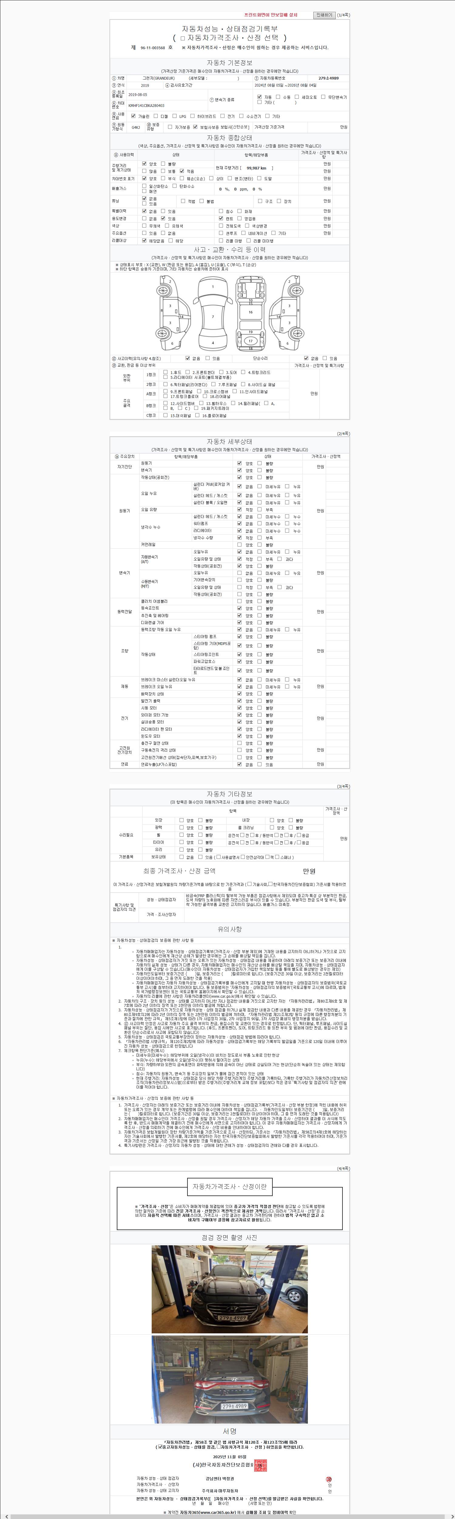 | 주행거리 | 99,987 km | 차량번호 | 279소4989 |