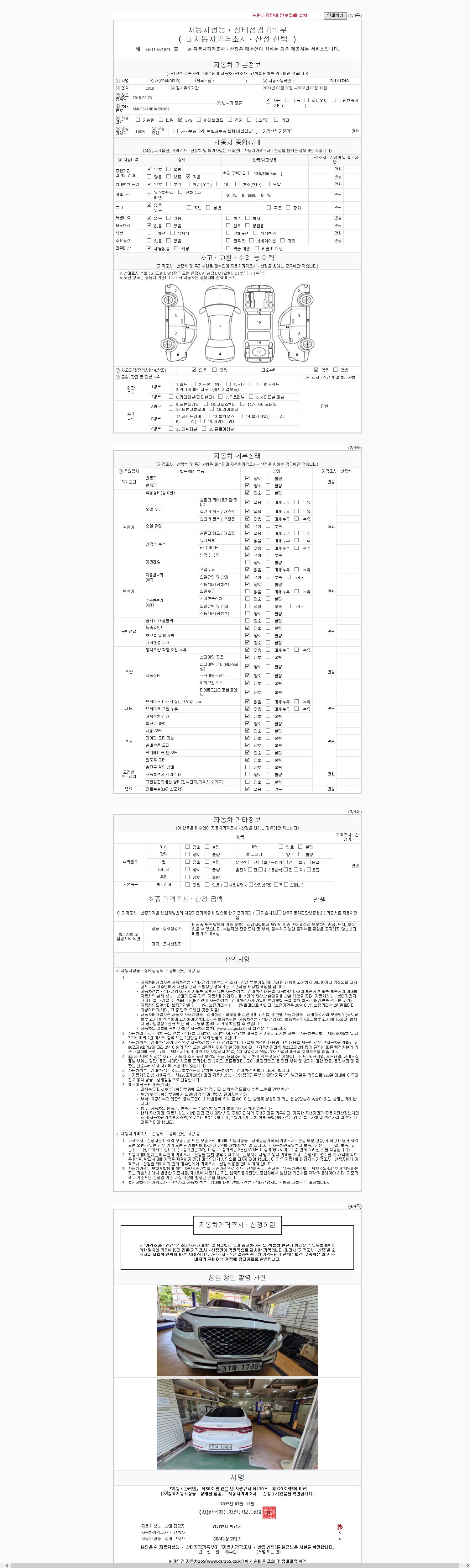 사고유무 성능기록부 참조 제시번호 제 2025093932 호