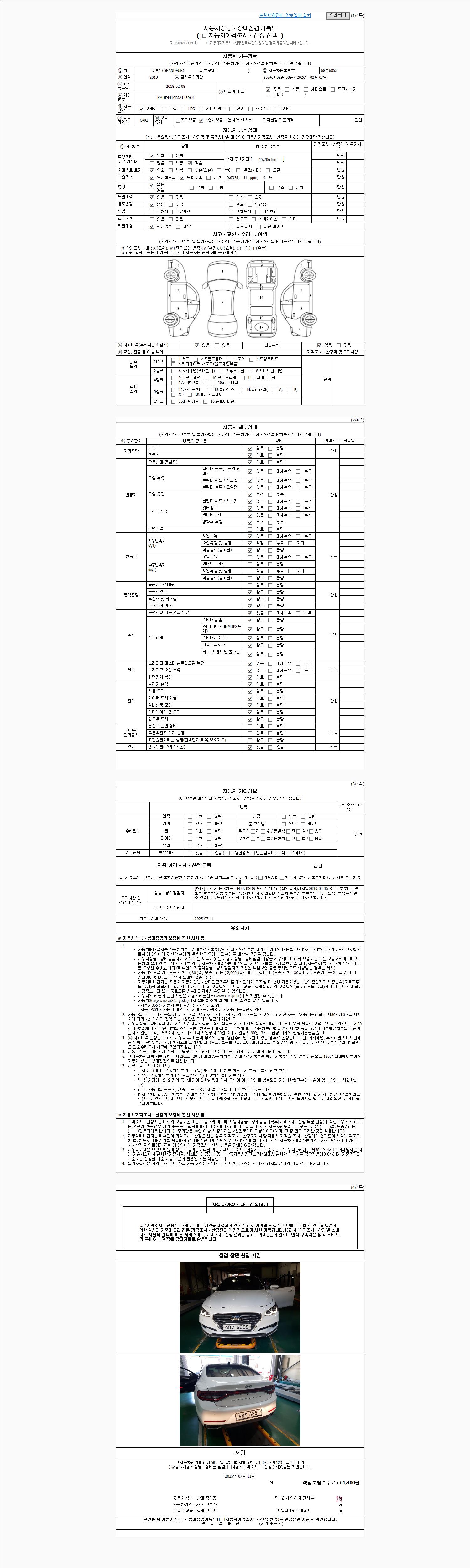 사고유무 성능기록부 참조 제시번호 제 2025058423 호