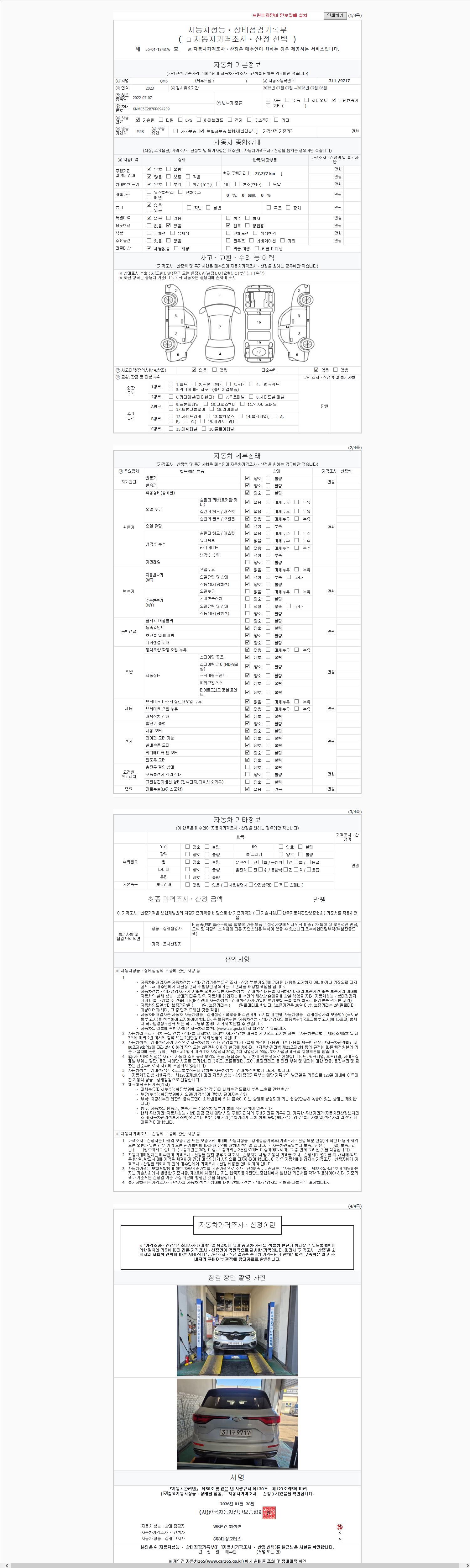2. 차량 등록증이나 성능점검지 등을 상담자에게 요청및 확인하시고 사전에 미리 점검 하시기를 권유드립니다.