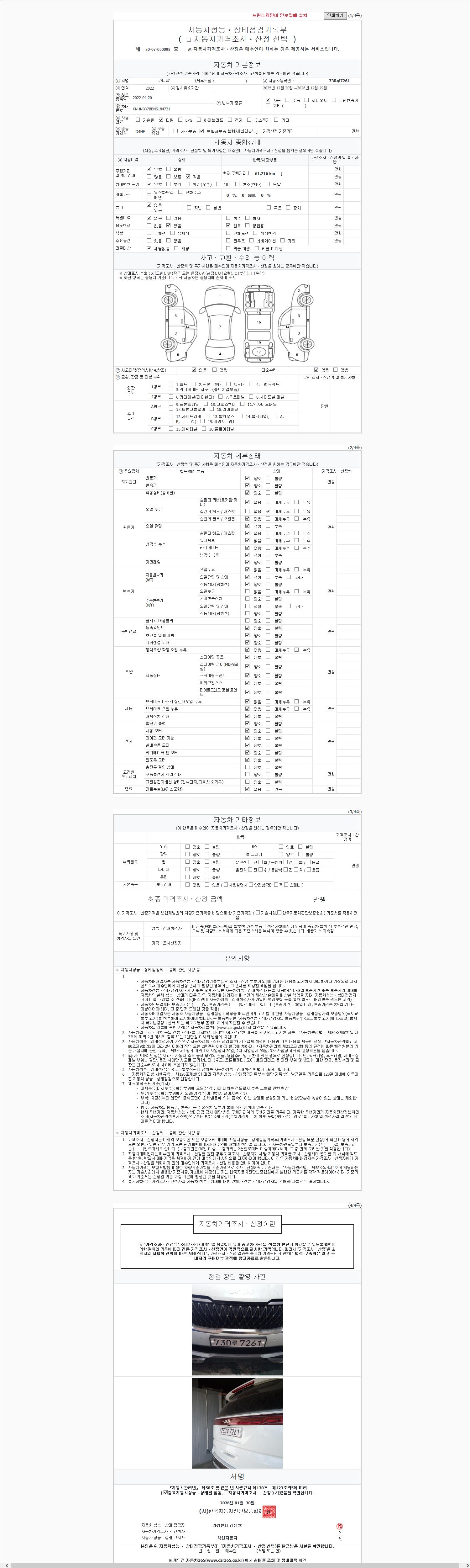 2. 차량 등록증이나 성능점검지 등을 상담자에게 요청및 확인하시고 사전에 미리 점검 하시기를 권유드립니다.